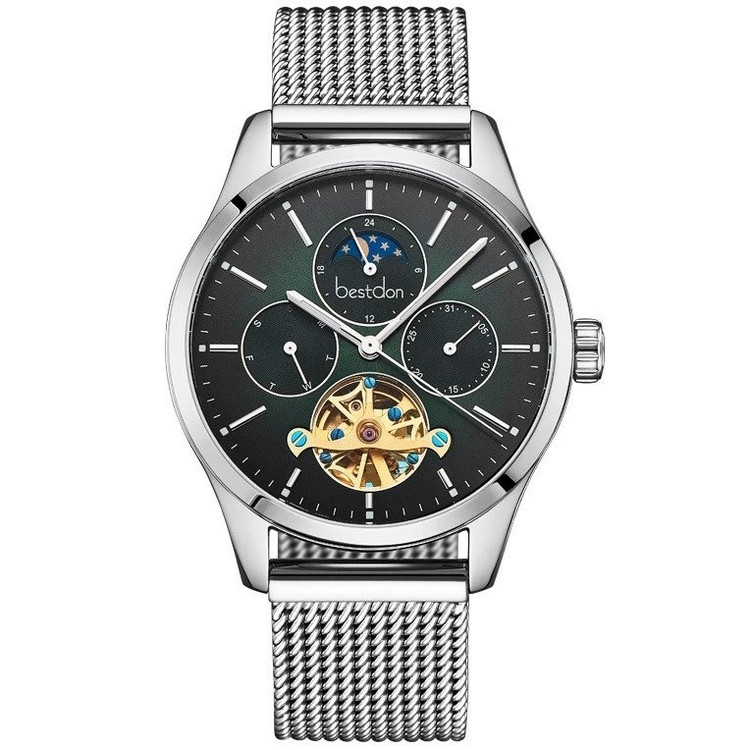 سایر توضیحات : ساخت دانمارک - ساعت مچی بند حصیری استیل نقره ای صفحه مشکی مردانه بستدون - اتوماتیک (نمایشگر از صفحه) اسکلتون - 3 موتوره - نشانگر تاریخ