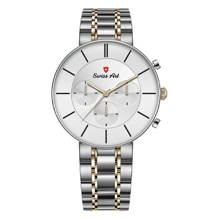 این مدل زنانه از ساعت سوئیس آرت با قاب گرد و بند فلزی طراحی شده است. برای جذابیت بخشیدن به شکل ظاهری ساعت از طراحی های به روز استفاده شده است . این ساعت سوئیس آرت داری سه موتور میباشد . جنس بدنه این از ساعت سوئیس آرت استیل بوده و به سادگی تغییر رنگ نمیدهد و از دوام بالایی برخوردار است. در ساخت شیشه آن از سافایر استفاده گردیده که نسبت به سایر شیشه های موجود در بازار از مقاومت بیشتری در برابر خش برخوردارند.
