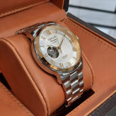 این طرح از ساعت مچی های مردانه برند ساعت اوماکس با طراحی و رنگ خاص خود برای تیپ های رسمی و مجلسی و کلاسیک بسیار مناسب می باشد. بند و بدنه ی این طرح از برند اوماکس از جنس استیل است و از ترکیب رنگ های نقره ای و طلایی در آن استفاده شده است. از ویژگیهای منحصر به فرد این ساعت میتوان به طراحی بسیار شیک ساعت در عین سادگی آن اشاره کرد. همچین این طرح از برند اماکس اتوماتیک میباشد و با حرکت دست شارژ میشود و نیازی به تعویض باطری ندارد.