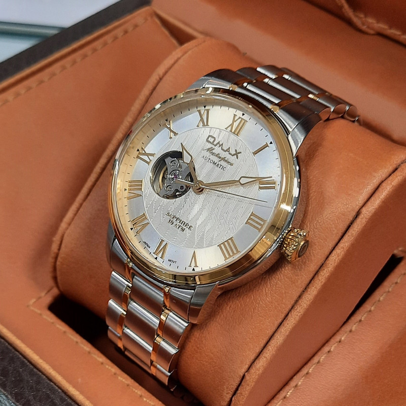 این طرح از ساعت مچی های مردانه برند ساعت اوماکس با طراحی و رنگ خاص خود برای تیپ های رسمی و مجلسی و کلاسیک بسیار مناسب می باشد. بند و بدنه ی این طرح از برند اوماکس از جنس استیل است و از ترکیب رنگ های نقره ای و طلایی در آن استفاده شده است. از ویژگیهای منحصر به فرد این ساعت میتوان به طراحی بسیار شیک ساعت در عین سادگی آن اشاره کرد. همچین این طرح از برند اماکس اتوماتیک میباشد و با حرکت دست شارژ میشود و نیازی به تعویض باطری ندارد.