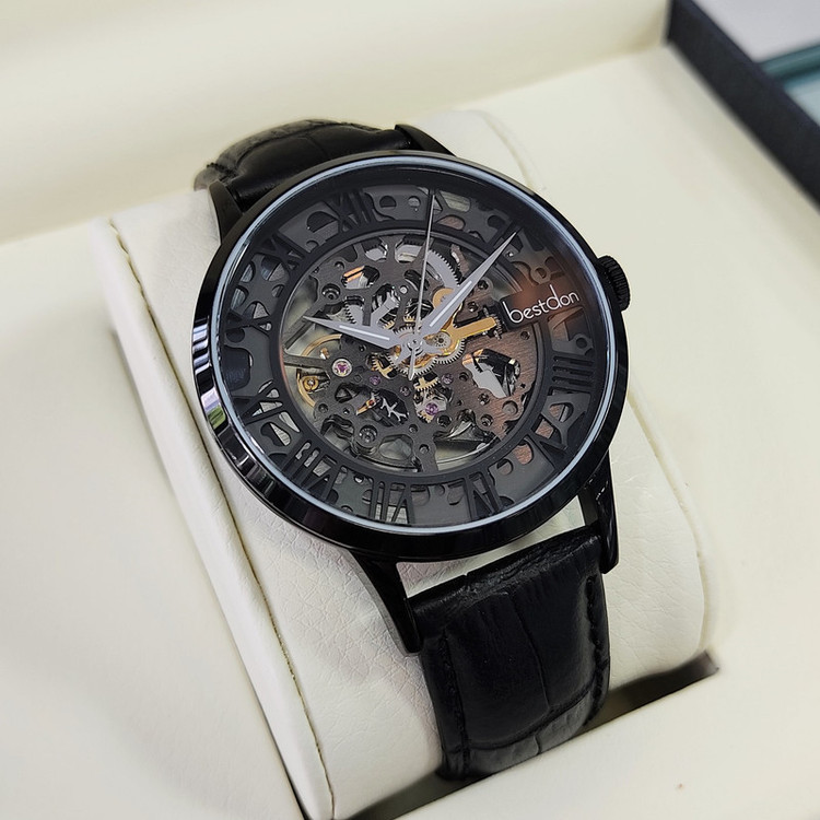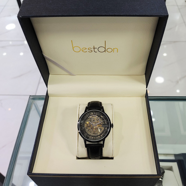 این ساعت مچی از برند بستدون مردانه بوده و بند چرمی و جنس بدنه ی آن استیل آنتی آلرژی و ضد حساسیت می باشد که از رنگ مشکی در آن استفاده شده است. سادگی در ساعت های بستدون کاملا مشهود است و به شکلی زیبا از این سادگی در ساعتهای بستدون استفاده شده که چشم هر بیننده ای را به خود جلب میکنند و زیبایی صفحه ی این ساعت مثال زدنی میباشد. این ساعت اتوماتیک و کوکی بوده و نیاز به باطری ندارد.
