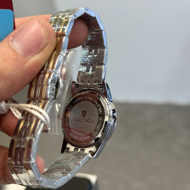 این ست از ساعت سوئیس آرت با قاب گرد و بند استیل طراحی شده است. برای جذابیت بخشیدن به شکل ظاهری ساعت از طراحی های به روز استفاده شده است . این ست ساعت سوئیس آرت دارای تقویم روز شمار میباشد. جنس بدنه این ست از ساعت سوئیس آرت استیل بوده و تغییر رنگ نمیدهد و از دوام بالایی برخوردار است. در ساخت شیشه آن از سافایر استفاده گردیده که نسبت به سایر شیشه های موجود در بازار از مقاومت بیشتری در برابر خش برخوردارند.