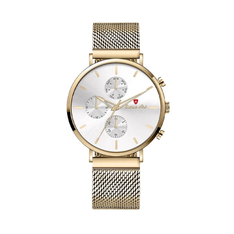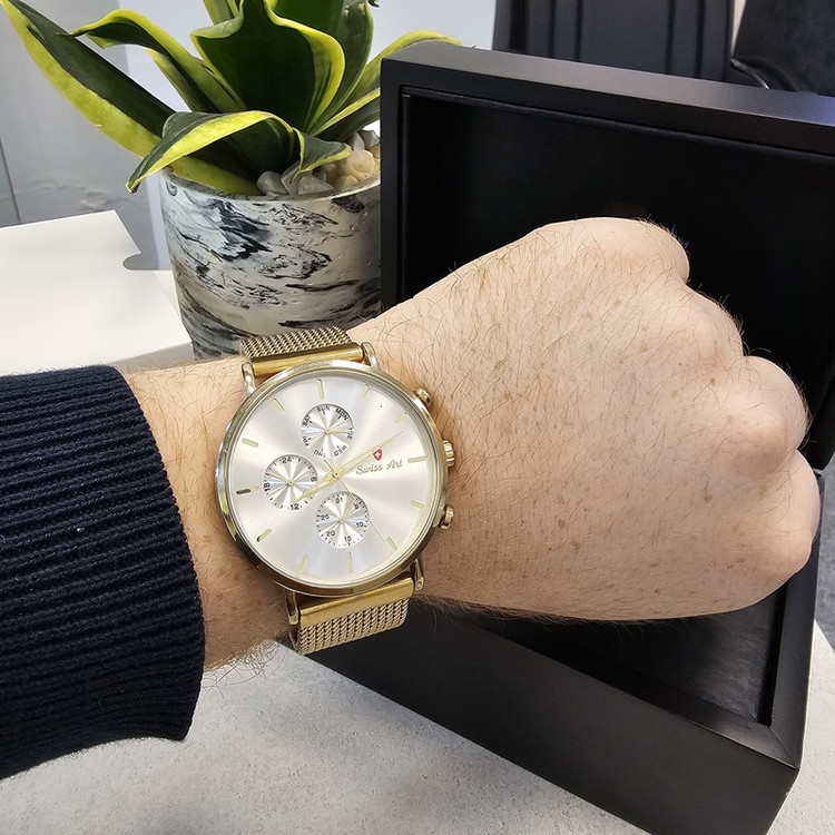 این مدل از ساعت سوئیس آرت با قاب گرد و بند فلزی طراحی شده است. برای جذابیت بخشیدن به شکل ظاهری ساعت از طراحی های به روز استفاده شده است . این ساعت سوئیس آرت داری سه موتور فعال میباشد . جنس بدنه این از ساعت سوئیس آرت استیل بوده و تغییر رنگ نمیدهد و از دوام بالایی برخوردار است. در این مدل از شیشه سافایر استفاده گردیده که نسبت به سایر شیشه های موجود در بازار از مقاومت بیشتری در برابر خش برخوردارند.