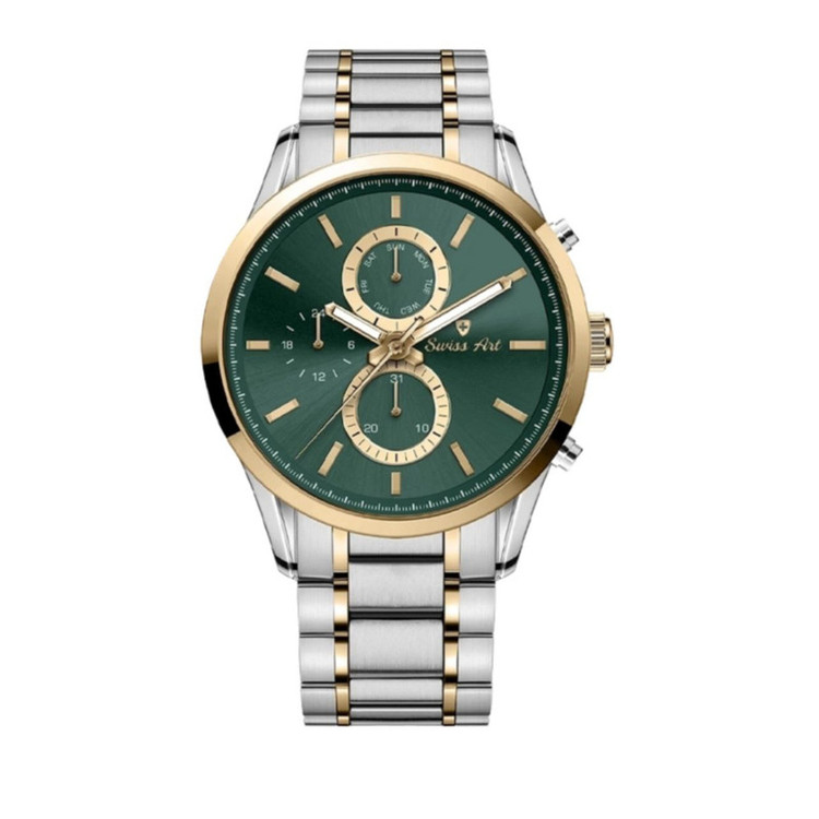 این مدل از ساعت سوئیس آرت با قاب گرد و بند استیل طراحی شده است. برای جذابیت بخشیدن به شکل ظاهری ساعت از طراحی های به روز استفاده شده است . این ساعت سوئیس آرت دارای تقویم روز شمار میباشد. جنس بدنه این ست از ساعت سوئیس آرت استیل بوده و تغییر رنگ نمیدهد و از دوام بالایی برخوردار است. در ساخت شیشه آن از سافایر استفاده گردیده که نسبت به سایر شیشه های موجود در بازار از مقاومت بیشتری در برابر خش برخوردارند.