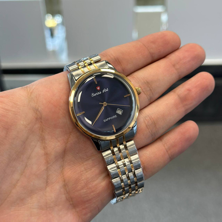 این مدل مردانه از ساعت سوئیس آرت با قاب گرد و بند فلزی طراحی شده است. برای جذابیت بخشیدن به شکل ظاهری ساعت از طراحی های به روز استفاده شده است . این مدل از ساعت سوئیس آرت دارای موتور تک زمانه کوارتز تقویمدار میباشد . جنس بدنه این ست از ساعت سوئیس آرت استیل بوده و تغییر رنگ نمیدهد و از دوام بالایی برخوردار است. در ساخت شیشه آن از سافایر استفاده گردیده که نسبت به سایر شیشه های موجود در بازار از مقاومت بیشتری در برابر خش برخوردارند.