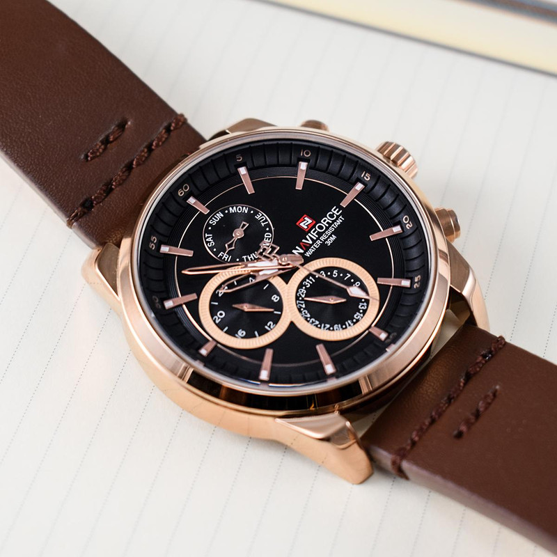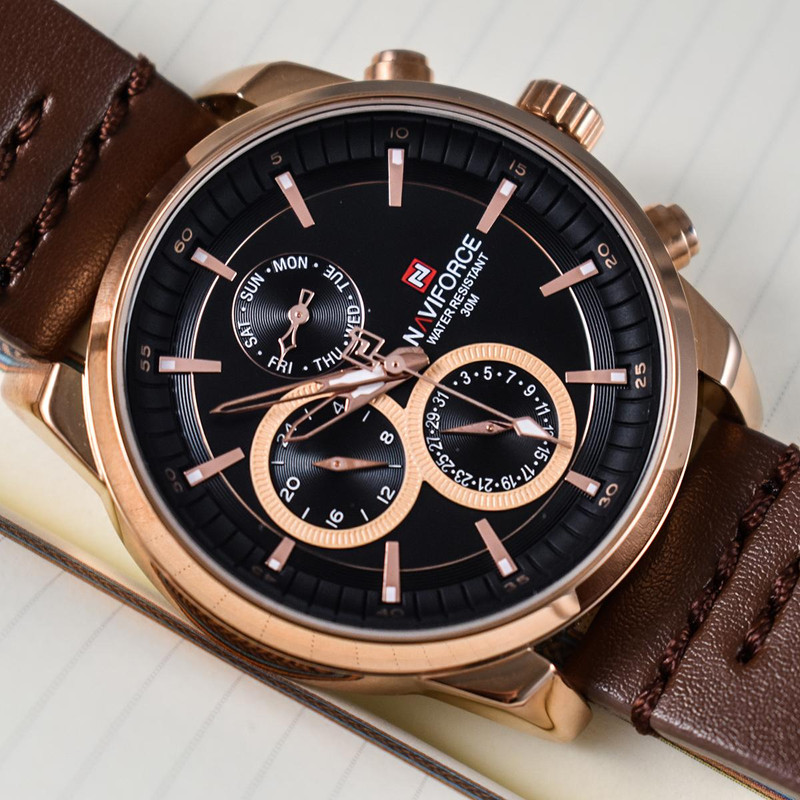متاسفانه این کالا در حال حاضر موجود نیست. میتوانید از طریق لیست بالای صفحه، از محصولات مشابه این کالا دیدن نمایید.ساعت مچی مردانه نیوی فورس NAVIFORCE مدل NF9148 می باشد. کسانی که ساعت مچی اورجینال با قیمت مناسب و با دوام و کیفیت بالا می خواهند NAVIFORCE یک انتخاب عالی محسوب می شود. این ساعت با طراحی کلاسیک ، بندچرم میباشد. ساعت های نیوی فورس محصول اورجینال هستند که موتور کوارتز ساخت ژاپن سه موتور فعال (فول تایم ) دارای نمایشگر روزهای هفته و تاریخ و24 ساعت شبانه روز ) با کیفیت عالی دارند. دارای بند چرم با شیشه معدنی مقاوم در برابر خش وعقربه ی شب نما که در این چند سال خیلی توانسته در دل مردم جا باز کند. ساعت های نیوی فورس ظاهر جذاب و اسپرتی دارند.