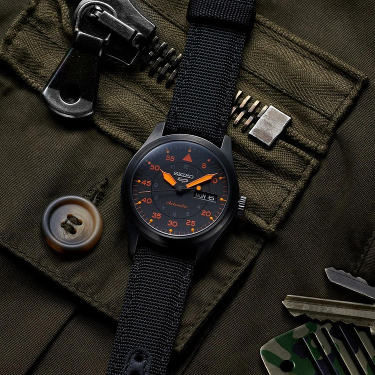این طرح از برند ساعت سیکو با طراحی و رنگ خاص خود برای تیپهای مجلسی و کت شلواری بسیار مناسب میباشد. بند برزنتی و بدنه ی این ساعت سیکو از جنس استیل است که از رنگهای مشکی و نارنجی در آن استفاده شده است. از ویژگیهای منحصر به فرد این ساعت میتوان به طراحی بسیار شیک و مجلسی ساعت در عین سادگی آن اشاره کرد. این ساعت از تکنولوژی اتوماتیک سیکو استفاده میکند و نیازی به تعویض باطری ندارد. همچنین این ساعت از برند سیکو دارای نمایشگر روزهای ماه و هفته نیز است.