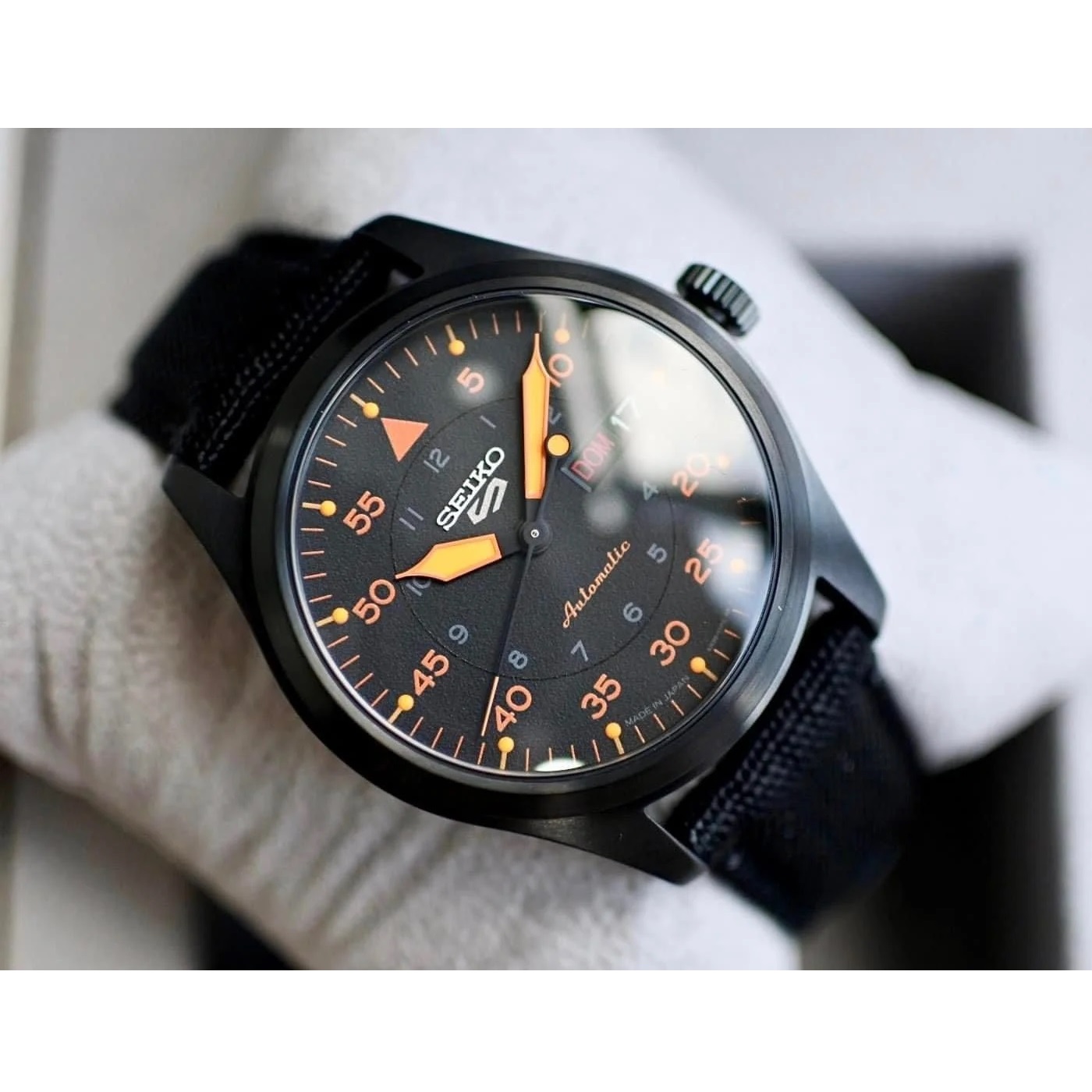 این طرح از برند ساعت سیکو با طراحی و رنگ خاص خود برای تیپهای مجلسی و کت شلواری بسیار مناسب میباشد. بند برزنتی و بدنه ی این ساعت سیکو از جنس استیل است که از رنگهای مشکی و نارنجی در آن استفاده شده است. از ویژگیهای منحصر به فرد این ساعت میتوان به طراحی بسیار شیک و مجلسی ساعت در عین سادگی آن اشاره کرد. این ساعت از تکنولوژی اتوماتیک سیکو استفاده میکند و نیازی به تعویض باطری ندارد. همچنین این ساعت از برند سیکو دارای نمایشگر روزهای ماه و هفته نیز است.