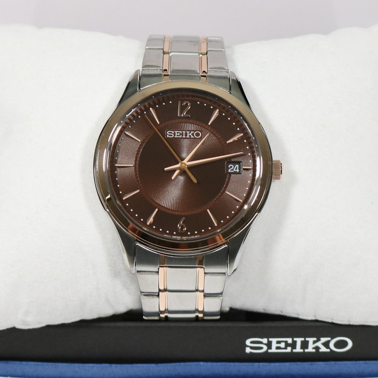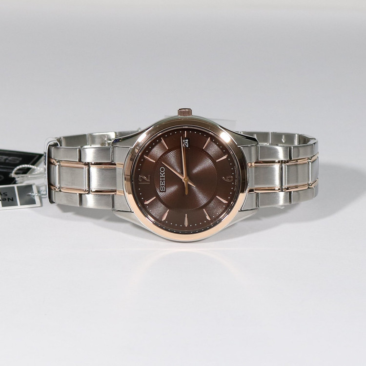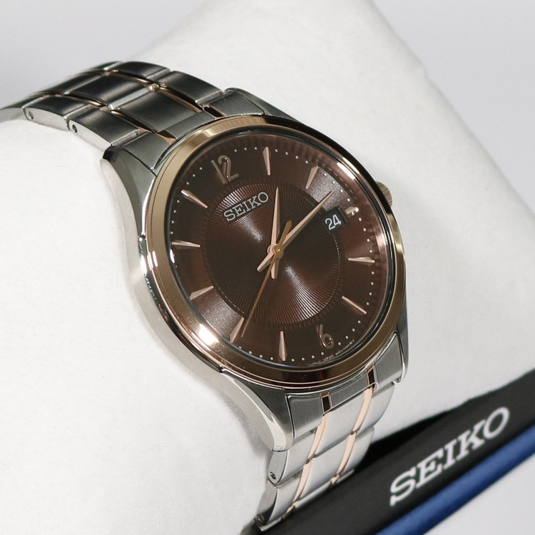 این طرح از برند ساعت سیکو با طراحی و رنگ خاص خود برای تیپهای مجلسی بسیار مناسب میباشد. بند و بدنه ی این ساعت سیکو از جنس استیل است که از ترکیب رنگ های نقره ای و رزگلد و قهوه ای در آن استفاده شده است. از ویژگیهای منحصر به فرد این ساعت میتوان به طراحی بسیار شیک و مجلسی ساعت اشاره کرد. این ساعت دارای نمایشگر روزهای ماه بوده و مقاومت آن در برابر آب 100 متر است. همچنین این ساعت دارای ست زنانه نیز میباشد.