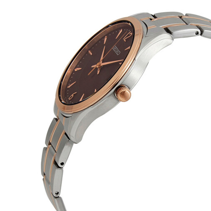 این طرح از برند ساعت سیکو با طراحی و رنگ خاص خود برای تیپهای مجلسی بسیار مناسب میباشد. بند و بدنه ی این ساعت سیکو از جنس استیل است که از ترکیب رنگ های نقره ای و رزگلد و قهوه ای در آن استفاده شده است. از ویژگیهای منحصر به فرد این ساعت میتوان به طراحی بسیار شیک و مجلسی ساعت اشاره کرد. این ساعت دارای نمایشگر روزهای ماه بوده و مقاومت آن در برابر آب 100 متر است. همچنین این ساعت دارای ست زنانه نیز میباشد.