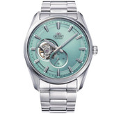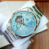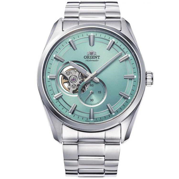 به معنای کامل این طرح از کمپانی اورینت یک شاهکار میباشد. دارای یک صفحه با زنگ منحصر به فرد با یک پنجره نیمه اسکلتی در ساعت 9 است که با دایره دوم کوچک در ساعت 6 همپوشانی دارد، و یک قاب لبه دار که حضوری قوی را به نمایش می گذارد. سبک معاصر آن نیمه اسکلت را به یکی از محبوب ترین مدل ها در سراسر جهان تبدیل کرده است. رنگهای صفحه حسی زنده به مجموعه ساعتها میبخشند و به ویژه برای مخاطبان جوانتر جذاب میشوند. صفحه های آبی روشن با عقربه های نقره ای رنگ و شاخص های اعمال شده همراه شده اند. هارمونی و کنتراست عالی رنگ ها، Semi Skeleton را جذاب تر می کند. قاب پشتی آشکار، کالیبر مکانیکی داخلی خودکار (با سیم پیچی) F6S22 را نشان می دهد که به دلیل ارائه دقت ثابت و ذخیره انرژی 40 ساعت شناخته شده است. این یک ساعت مکانیکی کاربردی است که برای استفاده روزانه ایده آل است.