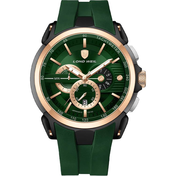 ساعت LOND WEIL با طراحی زیبا، کیفیت بالا و قیمت مناسب، انتخابی ایدهآل برای آقایان خوش سلیقه است. این ساعت با استایل اسپرت کلاسیک و رنگ سبز جذاب، به راحتی با انواع لباسها ست میشود و میتواند به عنوان یک اکسسوری شیک، استایل شما را ارتقا دهد.