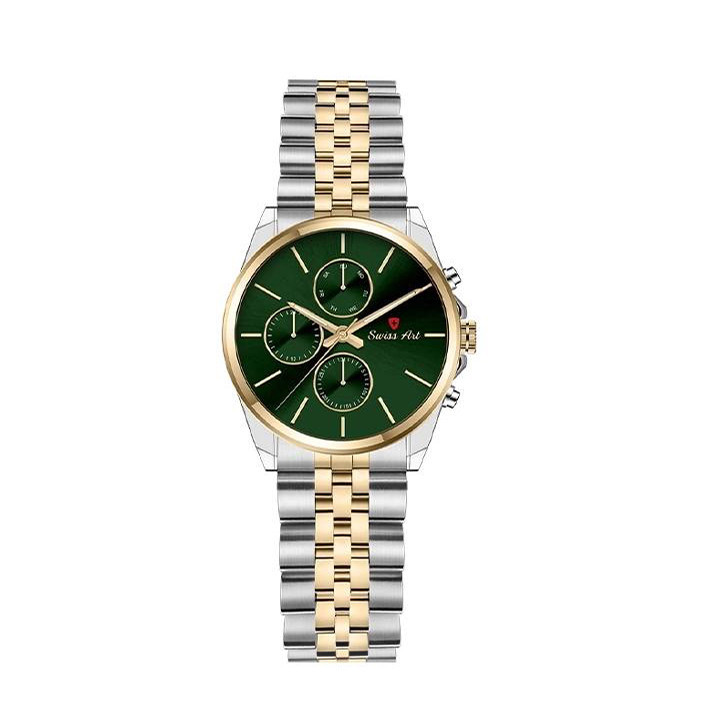 این مدل از ساعت سوئیس آرت با قاب گرد و بند استیل طراحی شده است. برای جذابیت بخشیدن به شکل ظاهری ساعت از طراحی های به روز استفاده شده است . این ساعت سوئیس آرت دارای تقویم روز شمار میباشد. جنس بدنه این ست از ساعت سوئیس آرت استیل بوده و تغییر رنگ نمیدهد و از دوام بالایی برخوردار است. در ساخت شیشه آن از سافایر استفاده گردیده که نسبت به سایر شیشه های موجود در بازار از مقاومت بیشتری در برابر خش برخوردارند.