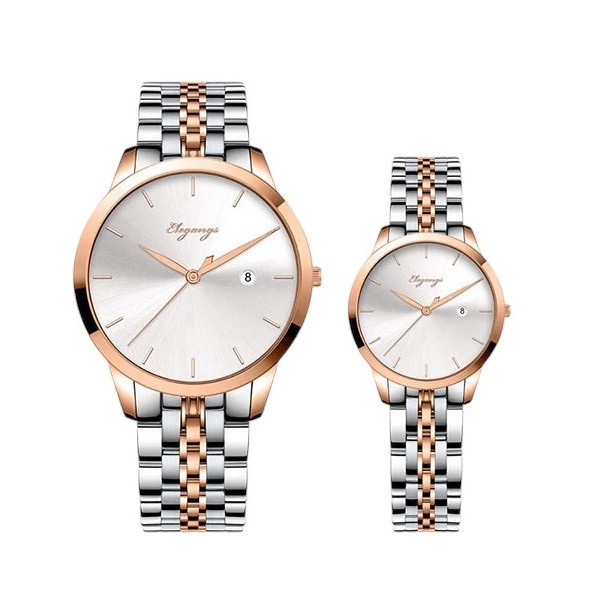 این طرح از برند ساعت ست زنانه و مردانه الگنگس با طراحی خاص خود برای تیپهای مجلسی و روزمره بسیار مناسب میباشد. بند و بدنه ی این ساعت الگنگس از جنس استیل است و از رنگهای رزگلد و نقره ای در آن استفاده شده است. از ویژگیهای منحصر به فرد این ساعت میتوان به طراحی ساده ی ساعت اشاره کرد که بسیار متفاوت و شیک طراحی گردیده همچنین این ساعت ست الگنگس دارای نمایشگر روزهای ماه میباشد.