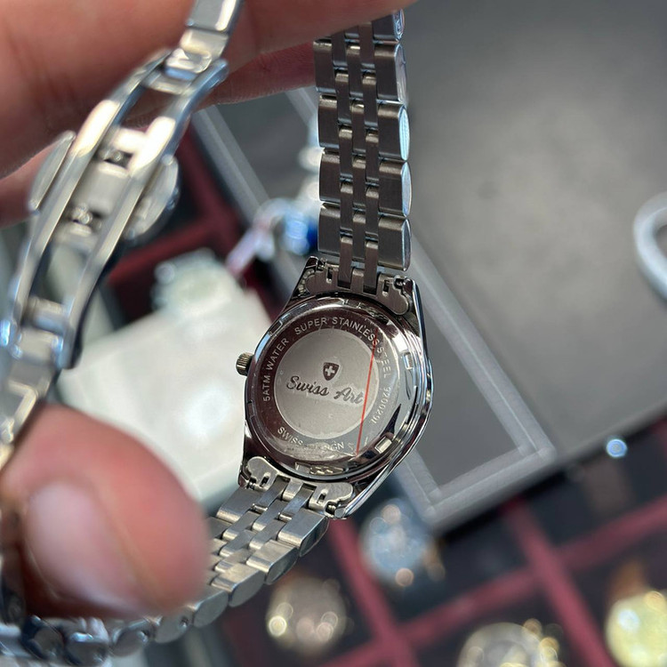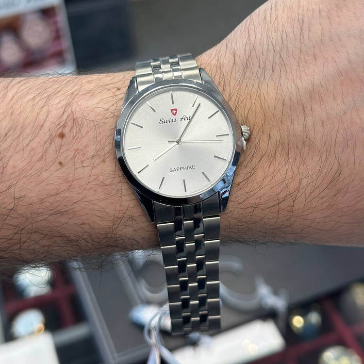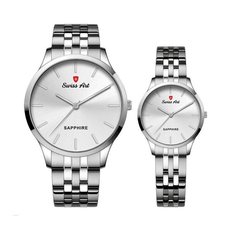 این ست از ساعت سوئیس آرت با قاب گرد و بند استیل طراحی شده است. برای جذابیت بخشیدن به شکل ظاهری ساعت از طراحی های به روز استفاده شده است . جنس بدنه این ست از ساعت سوئیس آرت استیل بوده و تغییر رنگ نمیدهد و از دوام بالایی برخوردار است. در ساخت شیشه آن از سافایر استفاده گردیده که نسبت به سایر شیشه های موجود در بازار از مقاومت بیشتری در برابر خش برخوردارند.