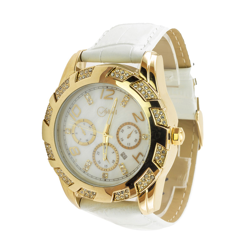 رنگ صفحهسفید صدفیجنس بندچرمرنگ بندسفیدنوع قفل بندسگکی سادهویژگیهای ساعتقابلیت نمایش 24 ساعتهفرم صفحهگرد