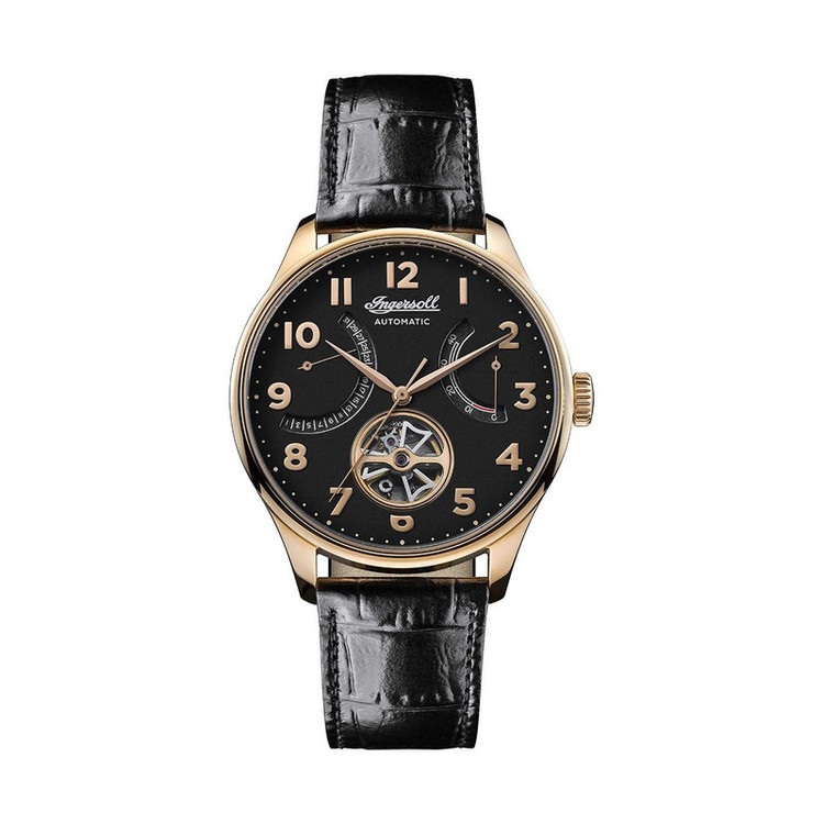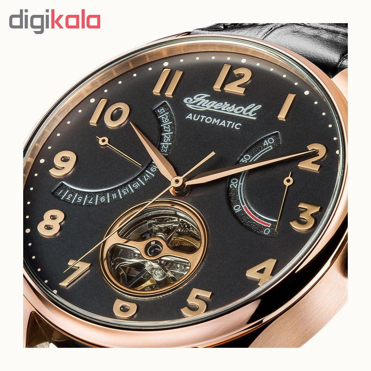 ساعت مچی مردانه کلاسیک بند چرم طبیعی نمایش تاریخ اتوماتیک برند آمریکا 37 عدد سنگ قیمتی داخل موتور شاخص ذخیره انرژی اسکلتون