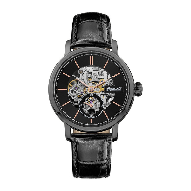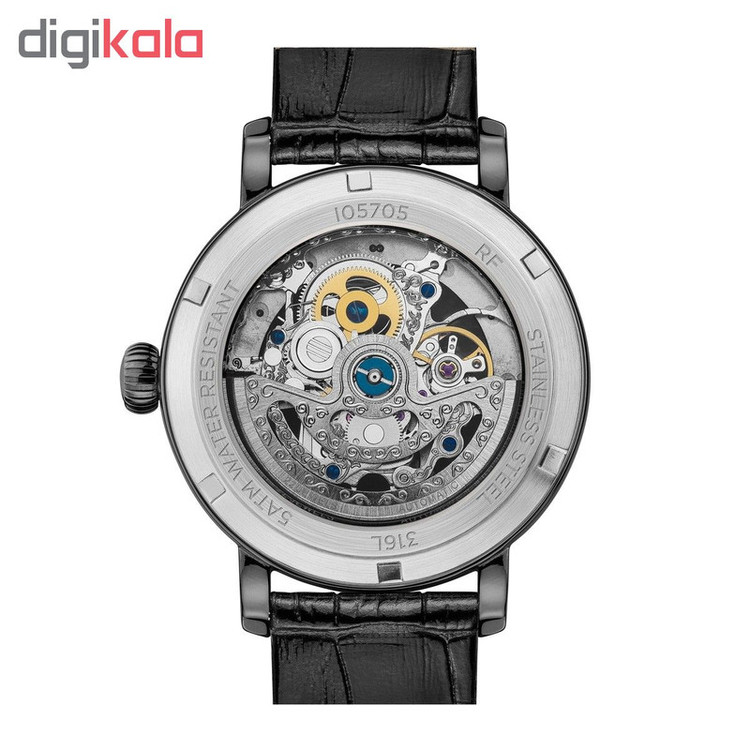 ساعت مردانه مچی بند چرم اصل اسکلتون(قلب باز) برند آمریکا مقاومت در برابر آب تا عمق 50متر دارای ثانیه شمار عرض بند 20 میلی متر ضخامت کیس 13 میلی متر اتوماتیک عقربه رزگلد