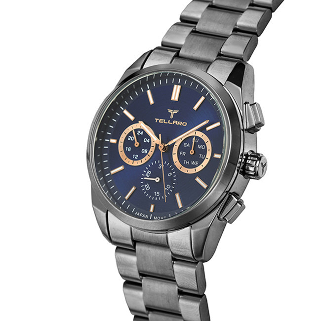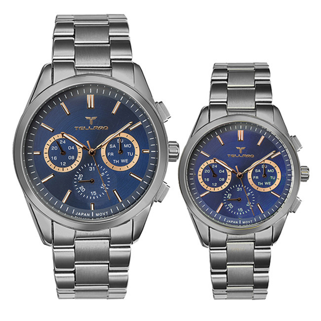ساعت مردانه tellaro یک اکسسوری بسیار شیک و جذاب کلاسیک مخصوص آقایان شیک پوش می باشد و تنوع بسیار زیادی دارد. برند مشهور tellaro یک شرکت تولید کننده انواع ساعت متعلق به کشور چین می باشد.اما اصالت این برند و طراحی آن متعلق به کشور ایتالیا میباشد تنوع بسیار زیاد و کیفیت مطلوب محصولات به ویژه انواع ساعت مردانه از این برند، سبب محبوبیت آن به ویژه در کشورهای خاورمیانه است. جالب است بدانید،موتور بکارگیری شده در ساعت های مچی برند tellaro ساخت کشور ژاپن می باشد. کشور ژاپن در عرصه تولید انواع ساعت و موتور ساعت در سراسر جهان شهرت زیادی دارد. ترکیب ظاهر کلاسیک با تلفیق تکنولوژی مدرن یکی از اصلی ترین دلایل محبوبیت ساعت مچی های این برند ایتالیایی می باشد. تلارو با ارائه طرح ها و مدل های بسیار متنوع ساعت مچی توانست در کمترین زمان بین آقایان ایرانی محبوبیت زیادی پیدا کند. صفحه نمایش اکثر مدل های ساعت مچی مردانه برند tellaro به شکل دایره می باشد. نوع کارکرد این ساعت ها از طرح کلاسیک الهام گرفته شده و به شکل عقربه ای یا به اصطلاح آنالوگ می باشد. جنس بدنه ساعت های مچی این برند اکثراً از فلز است و خاصیت ضد زنگ دارد. بند این ساعت ها از جنس استیل ضد زنگ یا چرم مصنوعی درجه یک و شیشه آن هاردلکس می باشد که ظاهری بسیار جذاب و شیک دارد که بسیار مقاوم هستند. نمایش تاریخ، کرونوگراف، سرعت سنج از جمله امکانات این ساعت ها هستند. قفل بند آن ها نیز تاشو با محافظ است. رنگ پس زمینه صفحه نمایش این ساعت های مچی نیز دارای طرح ها و زیبا و متنوع است و رنگ هایی مانند سفید، طلایی و نقره ای دارد. نوع بند و نوع قفل یکی از مهمترین ویژگی هایی است که هنگام خرید ساعت مچی باید به آن توجه داشته باشید. ساعت های دارای بند فلزی به صورت قفل مخفی فشاری و ساعت های بند چرمی به صورت بندینکی بسته می شوند. هنگام خرید ساعت به سایز مچ و رنگ پوست توجه داشته باشید و نوع بند و رنگ ساعت را بر این اساس انتخاب نمایید.