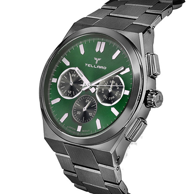 ساعت مردانه tellaro یک اکسسوری بسیار شیک و جذاب کلاسیک مخصوص آقایان شیک پوش می باشد و تنوع بسیار زیادی دارد. برند مشهور tellaro یک شرکت تولید کننده انواع ساعت متعلق به کشور چین می باشد.اما اصالت این برند و طراحی آن متعلق به کشور ایتالیا میباشد تنوع بسیار زیاد و کیفیت مطلوب محصولات به ویژه انواع ساعت مردانه از این برند، سبب محبوبیت آن به ویژه در کشورهای خاورمیانه است. جالب است بدانید،موتور بکارگیری شده در ساعت های مچی برند tellaro ساخت کشور ژاپن می باشد. کشور ژاپن در عرصه تولید انواع ساعت و موتور ساعت در سراسر جهان شهرت زیادی دارد. ترکیب ظاهر کلاسیک با تلفیق تکنولوژی مدرن یکی از اصلی ترین دلایل محبوبیت ساعت مچی های این برند ایتالیایی می باشد. تلارو با ارائه طرح ها و مدل های بسیار متنوع ساعت مچی توانست در کمترین زمان بین آقایان ایرانی محبوبیت زیادی پیدا کند. صفحه نمایش اکثر مدل های ساعت مچی مردانه برند tellaro به شکل دایره می باشد. نوع کارکرد این ساعت ها از طرح کلاسیک الهام گرفته شده و به شکل عقربه ای یا به اصطلاح آنالوگ می باشد. جنس بدنه ساعت های مچی این برند اکثراً از فلز است و خاصیت ضد زنگ دارد. بند این ساعت ها از جنس استیل ضد زنگ یا چرم مصنوعی درجه یک و شیشه آن هاردلکس می باشد که ظاهری بسیار جذاب و شیک دارد که بسیار مقاوم هستند. نمایش تاریخ، کرونوگراف، سرعت سنج از جمله امکانات این ساعت ها هستند. قفل بند آن ها نیز تاشو با محافظ است. رنگ پس زمینه صفحه نمایش این ساعت های مچی نیز دارای طرح ها و زیبا و متنوع است و رنگ هایی مانند سفید، طلایی و نقره ای دارد. نوع بند و نوع قفل یکی از مهمترین ویژگی هایی است که هنگام خرید ساعت مچی باید به آن توجه داشته باشید. ساعت های دارای بند فلزی به صورت قفل مخفی فشاری و ساعت های بند چرمی به صورت بندینکی بسته می شوند. هنگام خرید ساعت به سایز مچ و رنگ پوست توجه داشته باشید و نوع بند و رنگ ساعت را بر این اساس انتخاب نمایید.