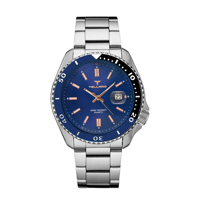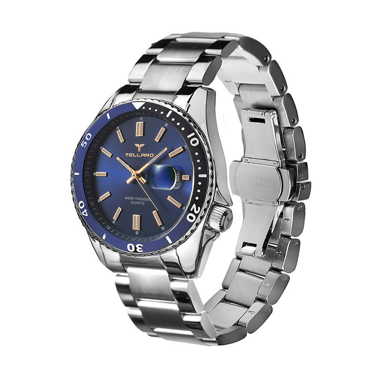 ساعت مردانه tellaro یک اکسسوری بسیار شیک و جذاب کلاسیک مخصوص آقایان شیک پوش می باشد و تنوع بسیار زیادی دارد. برند مشهور tellaro یک شرکت تولید کننده انواع ساعت متعلق به کشور چین می باشد.اما اصالت این برند و طراحی آن متعلق به کشور ایتالیا میباشد تنوع بسیار زیاد و کیفیت مطلوب محصولات به ویژه انواع ساعت مردانه از این برند، سبب محبوبیت آن به ویژه در کشورهای خاورمیانه است. جالب است بدانید،موتور بکارگیری شده در ساعت های مچی برند tellaro ساخت کشور ژاپن می باشد. کشور ژاپن در عرصه تولید انواع ساعت و موتور ساعت در سراسر جهان شهرت زیادی دارد. ترکیب ظاهر کلاسیک با تلفیق تکنولوژی مدرن یکی از اصلی ترین دلایل محبوبیت ساعت مچی های این برند ایتالیایی می باشد. تلارو با ارائه طرح ها و مدل های بسیار متنوع ساعت مچی توانست در کمترین زمان بین آقایان ایرانی محبوبیت زیادی پیدا کند. صفحه نمایش اکثر مدل های ساعت مچی مردانه برند tellaro به شکل دایره می باشد. نوع کارکرد این ساعت ها از طرح کلاسیک الهام گرفته شده و به شکل عقربه ای یا به اصطلاح آنالوگ می باشد. جنس بدنه ساعت های مچی این برند اکثراً از فلز است و خاصیت ضد زنگ دارد. بند این ساعت ها از جنس استیل ضد زنگ یا چرم مصنوعی درجه یک و شیشه آن هاردلکس می باشد که ظاهری بسیار جذاب و شیک دارد که بسیار مقاوم هستند. نمایش تاریخ، کرونوگراف، سرعت سنج از جمله امکانات این ساعت ها هستند. قفل بند آن ها نیز تاشو با محافظ است. رنگ پس زمینه صفحه نمایش این ساعت های مچی نیز دارای طرح ها و زیبا و متنوع است و رنگ هایی مانند سفید، طلایی و نقره ای دارد. نوع بند و نوع قفل یکی از مهمترین ویژگی هایی است که هنگام خرید ساعت مچی باید به آن توجه داشته باشید. ساعت های دارای بند فلزی به صورت قفل مخفی فشاری و ساعت های بند چرمی به صورت بندینکی بسته می شوند. هنگام خرید ساعت به سایز مچ و رنگ پوست توجه داشته باشید و نوع بند و رنگ ساعت را بر این اساس انتخاب نمایید.