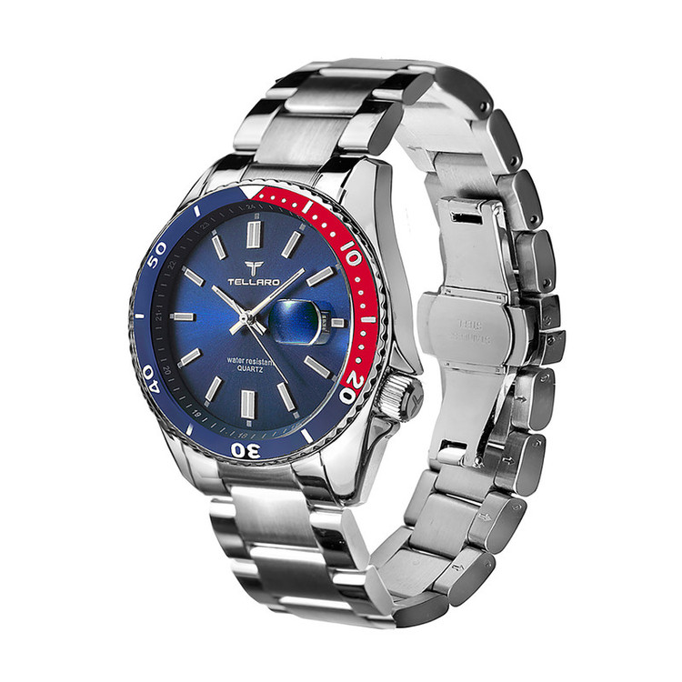 ساعت مردانه tellaro یک اکسسوری بسیار شیک و جذاب کلاسیک مخصوص آقایان شیک پوش می باشد و تنوع بسیار زیادی دارد. برند مشهور tellaro یک شرکت تولید کننده انواع ساعت متعلق به کشور چین می باشد.اما اصالت این برند و طراحی آن متعلق به کشور ایتالیا میباشد تنوع بسیار زیاد و کیفیت مطلوب محصولات به ویژه انواع ساعت مردانه از این برند، سبب محبوبیت آن به ویژه در کشورهای خاورمیانه است. جالب است بدانید،موتور بکارگیری شده در ساعت های مچی برند tellaro ساخت کشور ژاپن می باشد. کشور ژاپن در عرصه تولید انواع ساعت و موتور ساعت در سراسر جهان شهرت زیادی دارد. ترکیب ظاهر کلاسیک با تلفیق تکنولوژی مدرن یکی از اصلی ترین دلایل محبوبیت ساعت مچی های این برند ایتالیایی می باشد. تلارو با ارائه طرح ها و مدل های بسیار متنوع ساعت مچی توانست در کمترین زمان بین آقایان ایرانی محبوبیت زیادی پیدا کند. صفحه نمایش اکثر مدل های ساعت مچی مردانه برند tellaro به شکل دایره می باشد. نوع کارکرد این ساعت ها از طرح کلاسیک الهام گرفته شده و به شکل عقربه ای یا به اصطلاح آنالوگ می باشد. جنس بدنه ساعت های مچی این برند اکثراً از فلز است و خاصیت ضد زنگ دارد. بند این ساعت ها از جنس استیل ضد زنگ یا چرم مصنوعی درجه یک و شیشه آن هاردلکس می باشد که ظاهری بسیار جذاب و شیک دارد که بسیار مقاوم هستند. نمایش تاریخ، کرونوگراف، سرعت سنج از جمله امکانات این ساعت ها هستند. قفل بند آن ها نیز تاشو با محافظ است. رنگ پس زمینه صفحه نمایش این ساعت های مچی نیز دارای طرح ها و زیبا و متنوع است و رنگ هایی مانند سفید، طلایی و نقره ای دارد. نوع بند و نوع قفل یکی از مهمترین ویژگی هایی است که هنگام خرید ساعت مچی باید به آن توجه داشته باشید. ساعت های دارای بند فلزی به صورت قفل مخفی فشاری و ساعت های بند چرمی به صورت بندینکی بسته می شوند. هنگام خرید ساعت به سایز مچ و رنگ پوست توجه داشته باشید و نوع بند و رنگ ساعت را بر این اساس انتخاب نمایید.