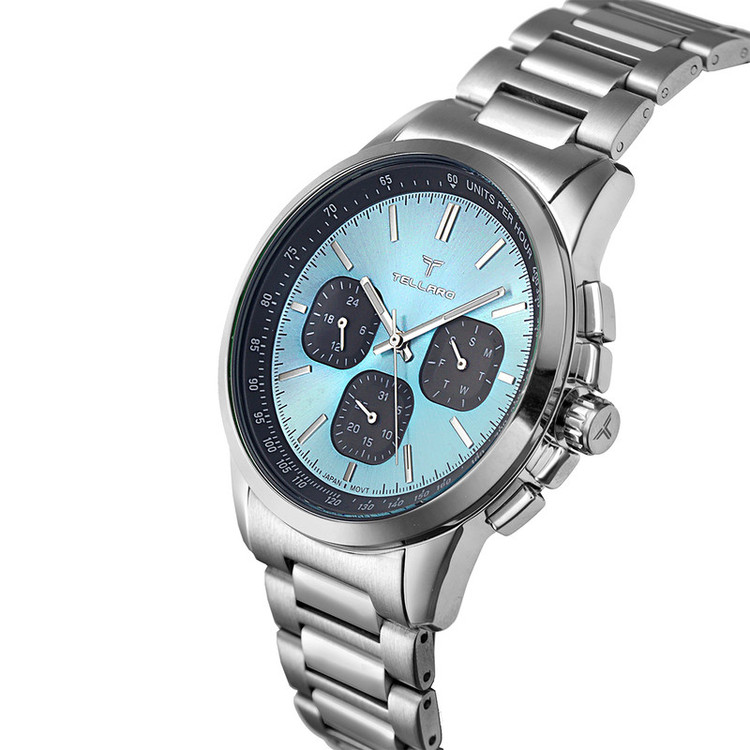 ساعت مردانه tellaro یک اکسسوری بسیار شیک و جذاب کلاسیک مخصوص آقایان شیک پوش می باشد و تنوع بسیار زیادی دارد. برند مشهور tellaro یک شرکت تولید کننده انواع ساعت متعلق به کشور چین می باشد.اما اصالت این برند و طراحی آن متعلق به کشور ایتالیا میباشد تنوع بسیار زیاد و کیفیت مطلوب محصولات به ویژه انواع ساعت مردانه از این برند، سبب محبوبیت آن به ویژه در کشورهای خاورمیانه است. جالب است بدانید،موتور بکارگیری شده در ساعت های مچی برند tellaro ساخت کشور ژاپن می باشد. کشور ژاپن در عرصه تولید انواع ساعت و موتور ساعت در سراسر جهان شهرت زیادی دارد. ترکیب ظاهر کلاسیک با تلفیق تکنولوژی مدرن یکی از اصلی ترین دلایل محبوبیت ساعت مچی های این برند ایتالیایی می باشد. تلارو با ارائه طرح ها و مدل های بسیار متنوع ساعت مچی توانست در کمترین زمان بین آقایان ایرانی محبوبیت زیادی پیدا کند. صفحه نمایش اکثر مدل های ساعت مچی مردانه برند tellaro به شکل دایره می باشد. نوع کارکرد این ساعت ها از طرح کلاسیک الهام گرفته شده و به شکل عقربه ای یا به اصطلاح آنالوگ می باشد. جنس بدنه ساعت های مچی این برند اکثراً از فلز است و خاصیت ضد زنگ دارد. بند این ساعت ها از جنس استیل ضد زنگ یا چرم مصنوعی درجه یک و شیشه آن هاردلکس می باشد که ظاهری بسیار جذاب و شیک دارد که بسیار مقاوم هستند. نمایش تاریخ، کرونوگراف، سرعت سنج از جمله امکانات این ساعت ها هستند. قفل بند آن ها نیز تاشو با محافظ است. رنگ پس زمینه صفحه نمایش این ساعت های مچی نیز دارای طرح ها و زیبا و متنوع است و رنگ هایی مانند سفید، طلایی و نقره ای دارد. نوع بند و نوع قفل یکی از مهمترین ویژگی هایی است که هنگام خرید ساعت مچی باید به آن توجه داشته باشید. ساعت های دارای بند فلزی به صورت قفل مخفی فشاری و ساعت های بند چرمی به صورت بندینکی بسته می شوند. هنگام خرید ساعت به سایز مچ و رنگ پوست توجه داشته باشید و نوع بند و رنگ ساعت را بر این اساس انتخاب نمایید.