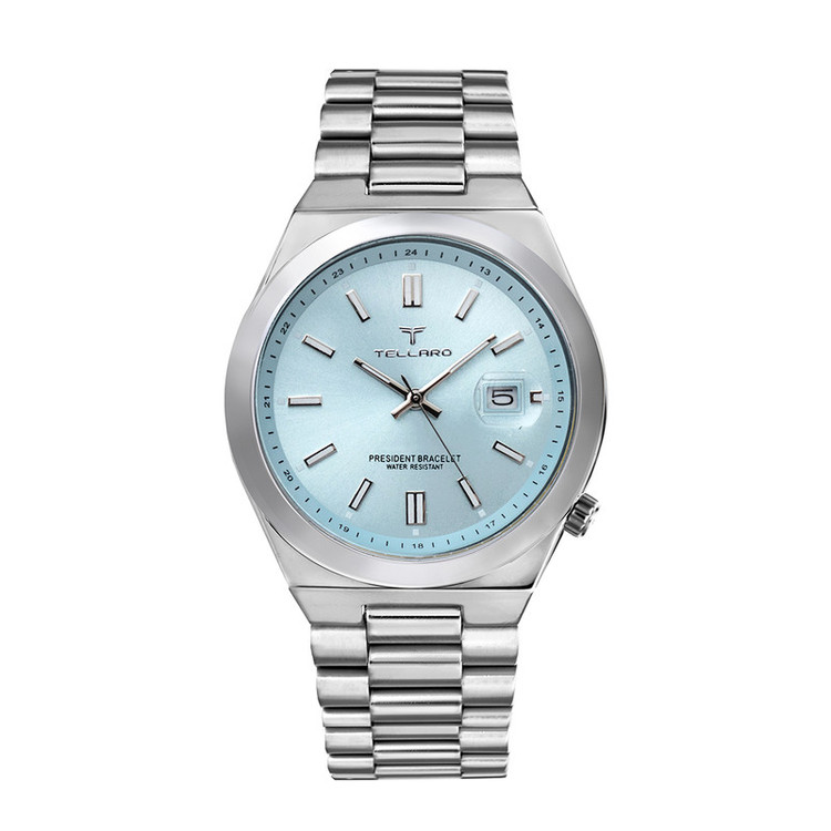 ساعت مردانه tellaro یک اکسسوری بسیار شیک و جذاب کلاسیک مخصوص آقایان شیک پوش می باشد و تنوع بسیار زیادی دارد. برند مشهور tellaro یک شرکت تولید کننده انواع ساعت متعلق به کشور چین می باشد.اما اصالت این برند و طراحی آن متعلق به کشور ایتالیا میباشد تنوع بسیار زیاد و کیفیت مطلوب محصولات به ویژه انواع ساعت مردانه از این برند، سبب محبوبیت آن به ویژه در کشورهای خاورمیانه است. جالب است بدانید،موتور بکارگیری شده در ساعت های مچی برند tellaro ساخت کشور ژاپن می باشد. کشور ژاپن در عرصه تولید انواع ساعت و موتور ساعت در سراسر جهان شهرت زیادی دارد. ترکیب ظاهر کلاسیک با تلفیق تکنولوژی مدرن یکی از اصلی ترین دلایل محبوبیت ساعت مچی های این برند ایتالیایی می باشد. تلارو با ارائه طرح ها و مدل های بسیار متنوع ساعت مچی توانست در کمترین زمان بین آقایان ایرانی محبوبیت زیادی پیدا کند. صفحه نمایش اکثر مدل های ساعت مچی مردانه برند tellaro به شکل دایره می باشد. نوع کارکرد این ساعت ها از طرح کلاسیک الهام گرفته شده و به شکل عقربه ای یا به اصطلاح آنالوگ می باشد. جنس بدنه ساعت های مچی این برند اکثراً از فلز است و خاصیت ضد زنگ دارد. بند این ساعت ها از جنس استیل ضد زنگ یا چرم مصنوعی درجه یک و شیشه آن هاردلکس می باشد که ظاهری بسیار جذاب و شیک دارد که بسیار مقاوم هستند. نمایش تاریخ، کرونوگراف، سرعت سنج از جمله امکانات این ساعت ها هستند. قفل بند آن ها نیز تاشو با محافظ است. رنگ پس زمینه صفحه نمایش این ساعت های مچی نیز دارای طرح ها و زیبا و متنوع است و رنگ هایی مانند سفید، طلایی و نقره ای دارد. نوع بند و نوع قفل یکی از مهمترین ویژگی هایی است که هنگام خرید ساعت مچی باید به آن توجه داشته باشید. ساعت های دارای بند فلزی به صورت قفل مخفی فشاری و ساعت های بند چرمی به صورت بندینکی بسته می شوند. هنگام خرید ساعت به سایز مچ و رنگ پوست توجه داشته باشید و نوع بند و رنگ ساعت را بر این اساس انتخاب نمایید