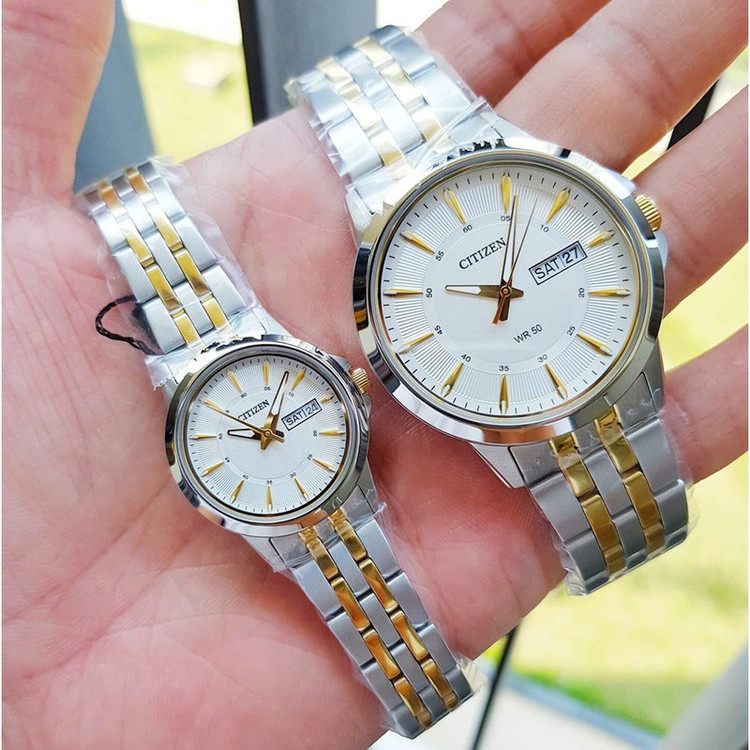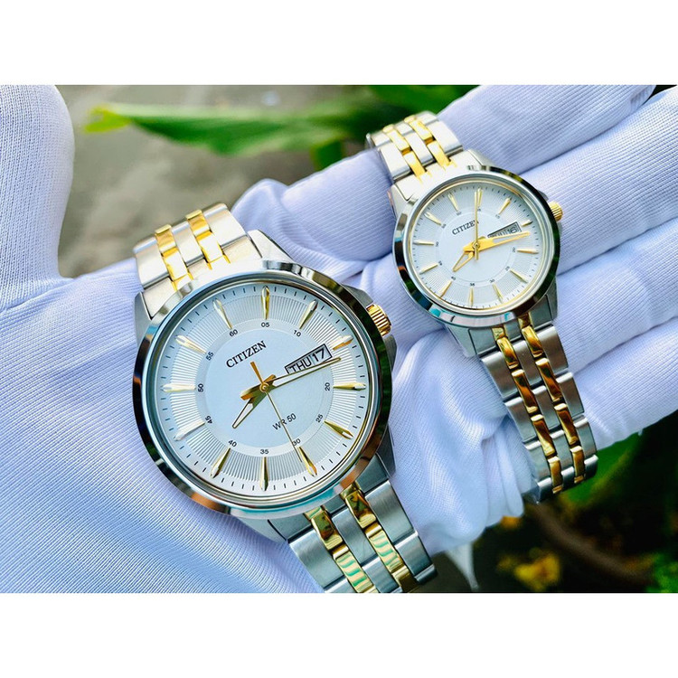 این طرح از ساعت مچی های ست برند سیتی زن مناسب ست کلاسیک و مجلسی می باشد و با صفحه سفید و طلایی رنگ خود از ظرافت خاص و منحصر به فردی برخوردار است. این مدل از ساعت های برند سیتی زن جزو ساعت های پرفروش این برند می باشد و دارای بند و بدنه استیل نقره ای و طلایی بوده و در عین ظرافت صاحب جذابیت و ابهت بی نظیری است.