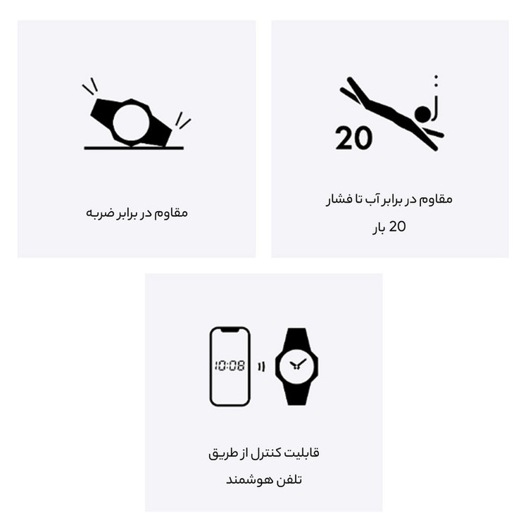قابلیت نمایش 24 ساعته , قابلیت نمایش ساعت دوم , نور پس زمینه , تایمر , آلارم