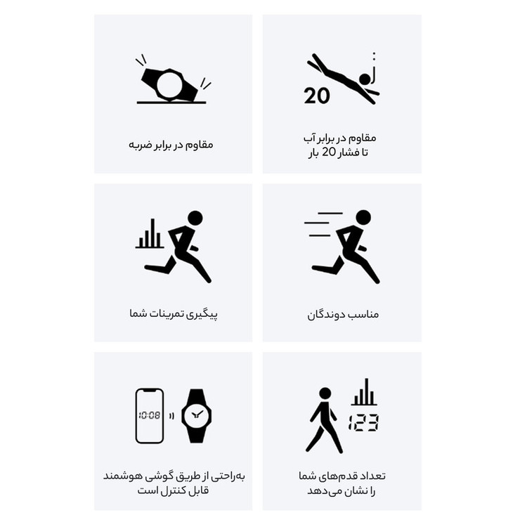 قابلیت نمایش ساعت دوم , تاریخ شمار , نور پس زمینه , آلارم