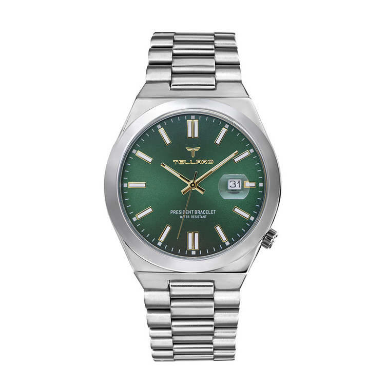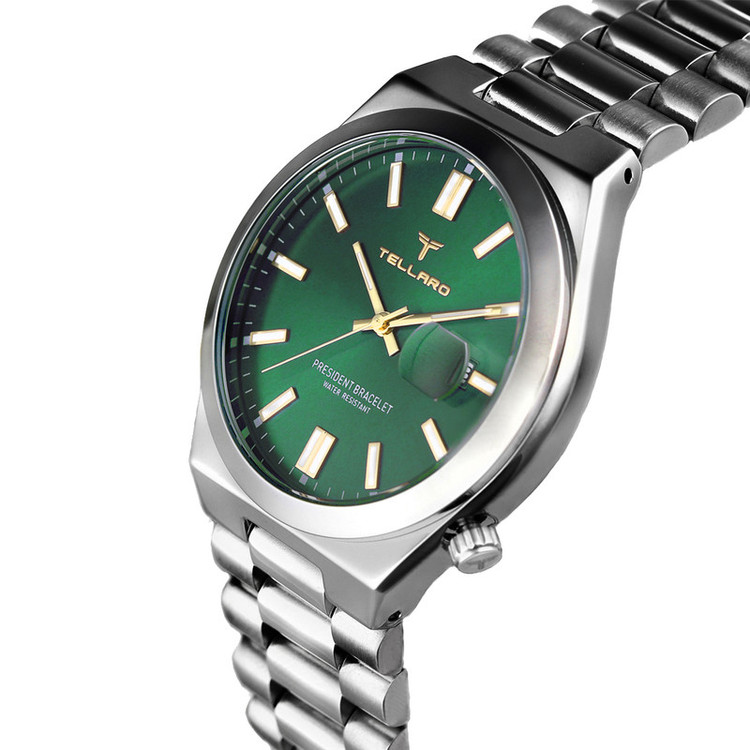 ساعت مردانه tellaro یک اکسسوری بسیار شیک و جذاب کلاسیک مخصوص آقایان شیک پوش می باشد و تنوع بسیار زیادی دارد. برند مشهور tellaro یک شرکت تولید کننده انواع ساعت متعلق به کشور چین می باشد.اما اصالت این برند و طراحی آن متعلق به کشور ایتالیا میباشد تنوع بسیار زیاد و کیفیت مطلوب محصولات به ویژه انواع ساعت مردانه از این برند، سبب محبوبیت آن به ویژه در کشورهای خاورمیانه است. جالب است بدانید،موتور بکارگیری شده در ساعت های مچی برند tellaro ساخت کشور ژاپن می باشد. کشور ژاپن در عرصه تولید انواع ساعت و موتور ساعت در سراسر جهان شهرت زیادی دارد. ترکیب ظاهر کلاسیک با تلفیق تکنولوژی مدرن یکی از اصلی ترین دلایل محبوبیت ساعت مچی های این برند ایتالیایی می باشد. تلارو با ارائه طرح ها و مدل های بسیار متنوع ساعت مچی توانست در کمترین زمان بین آقایان ایرانی محبوبیت زیادی پیدا کند. صفحه نمایش اکثر مدل های ساعت مچی مردانه برند tellaro به شکل دایره می باشد. نوع کارکرد این ساعت ها از طرح کلاسیک الهام گرفته شده و به شکل عقربه ای یا به اصطلاح آنالوگ می باشد. جنس بدنه ساعت های مچی این برند اکثراً از فلز است و خاصیت ضد زنگ دارد. بند این ساعت ها از جنس استیل ضد زنگ یا چرم مصنوعی درجه یک و شیشه آن هاردلکس می باشد که ظاهری بسیار جذاب و شیک دارد که بسیار مقاوم هستند. نمایش تاریخ، کرونوگراف، سرعت سنج از جمله امکانات این ساعت ها هستند. قفل بند آن ها نیز تاشو با محافظ است. رنگ پس زمینه صفحه نمایش این ساعت های مچی نیز دارای طرح ها و زیبا و متنوع است و رنگ هایی مانند سفید، طلایی و نقره ای دارد. نوع بند و نوع قفل یکی از مهمترین ویژگی هایی است که هنگام خرید ساعت مچی باید به آن توجه داشته باشید. ساعت های دارای بند فلزی به صورت قفل مخفی فشاری و ساعت های بند چرمی به صورت بندینکی بسته می شوند. هنگام خرید ساعت به سایز مچ و رنگ پوست توجه داشته باشید و نوع بند و رنگ ساعت را بر این اساس انتخاب نمایید.