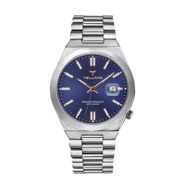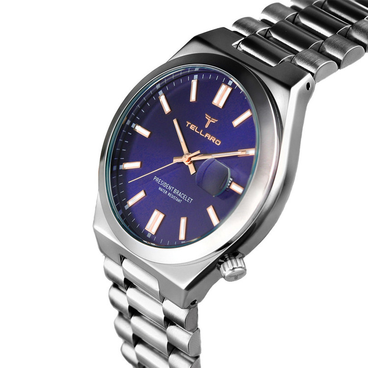 ساعت مردانه tellaro یک اکسسوری بسیار شیک و جذاب کلاسیک مخصوص آقایان شیک پوش می باشد و تنوع بسیار زیادی دارد. برند مشهور tellaro یک شرکت تولید کننده انواع ساعت متعلق به کشور چین می باشد.اما اصالت این برند و طراحی آن متعلق به کشور ایتالیا میباشد تنوع بسیار زیاد و کیفیت مطلوب محصولات به ویژه انواع ساعت مردانه از این برند، سبب محبوبیت آن به ویژه در کشورهای خاورمیانه است. جالب است بدانید،موتور بکارگیری شده در ساعت های مچی برند tellaro ساخت کشور ژاپن می باشد. کشور ژاپن در عرصه تولید انواع ساعت و موتور ساعت در سراسر جهان شهرت زیادی دارد. ترکیب ظاهر کلاسیک با تلفیق تکنولوژی مدرن یکی از اصلی ترین دلایل محبوبیت ساعت مچی های این برند ایتالیایی می باشد. تلارو با ارائه طرح ها و مدل های بسیار متنوع ساعت مچی توانست در کمترین زمان بین آقایان ایرانی محبوبیت زیادی پیدا کند. صفحه نمایش اکثر مدل های ساعت مچی مردانه برند tellaro به شکل دایره می باشد. نوع کارکرد این ساعت ها از طرح کلاسیک الهام گرفته شده و به شکل عقربه ای یا به اصطلاح آنالوگ می باشد. جنس بدنه ساعت های مچی این برند اکثراً از فلز است و خاصیت ضد زنگ دارد. بند این ساعت ها از جنس استیل ضد زنگ یا چرم مصنوعی درجه یک و شیشه آن هاردلکس می باشد که ظاهری بسیار جذاب و شیک دارد که بسیار مقاوم هستند. نمایش تاریخ، کرونوگراف، سرعت سنج از جمله امکانات این ساعت ها هستند. قفل بند آن ها نیز تاشو با محافظ است. رنگ پس زمینه صفحه نمایش این ساعت های مچی نیز دارای طرح ها و زیبا و متنوع است و رنگ هایی مانند سفید، طلایی و نقره ای دارد. نوع بند و نوع قفل یکی از مهمترین ویژگی هایی است که هنگام خرید ساعت مچی باید به آن توجه داشته باشید. ساعت های دارای بند فلزی به صورت قفل مخفی فشاری و ساعت های بند چرمی به صورت بندینکی بسته می شوند. هنگام خرید ساعت به سایز مچ و رنگ پوست توجه داشته باشید و نوع بند و رنگ ساعت را بر این اساس انتخاب نمایید.