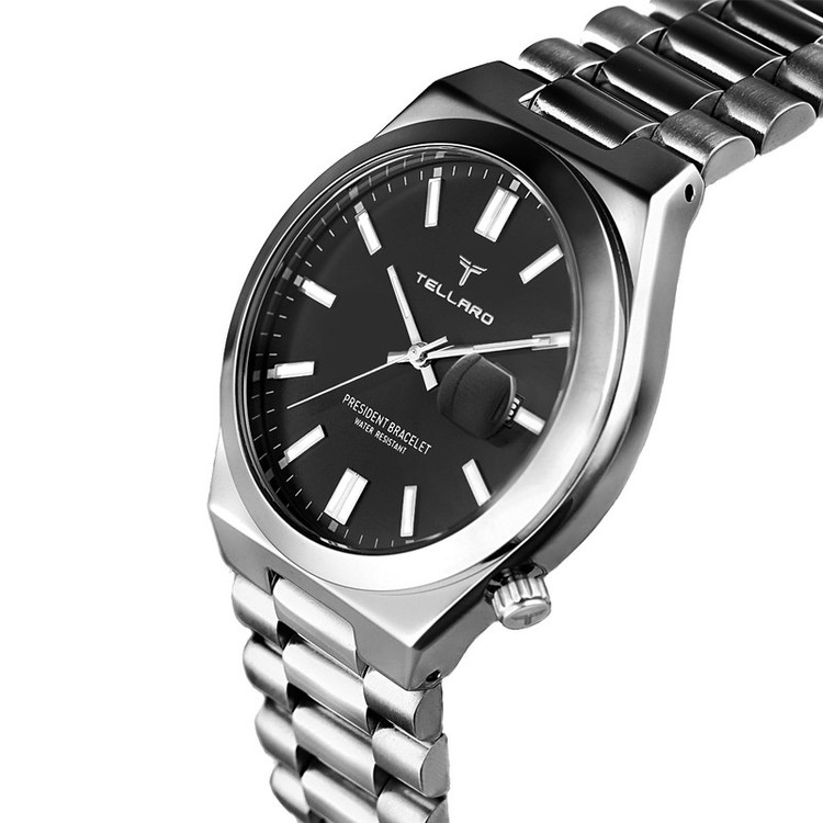 ساعت مردانه tellaro یک اکسسوری بسیار شیک و جذاب کلاسیک مخصوص آقایان شیک پوش می باشد و تنوع بسیار زیادی دارد. برند مشهور tellaro یک شرکت تولید کننده انواع ساعت متعلق به کشور چین می باشد.اما اصالت این برند و طراحی آن متعلق به کشور ایتالیا میباشد تنوع بسیار زیاد و کیفیت مطلوب محصولات به ویژه انواع ساعت مردانه از این برند، سبب محبوبیت آن به ویژه در کشورهای خاورمیانه است. جالب است بدانید،موتور بکارگیری شده در ساعت های مچی برند tellaro ساخت کشور ژاپن می باشد. کشور ژاپن در عرصه تولید انواع ساعت و موتور ساعت در سراسر جهان شهرت زیادی دارد. ترکیب ظاهر کلاسیک با تلفیق تکنولوژی مدرن یکی از اصلی ترین دلایل محبوبیت ساعت مچی های این برند ایتالیایی می باشد. تلارو با ارائه طرح ها و مدل های بسیار متنوع ساعت مچی توانست در کمترین زمان بین آقایان ایرانی محبوبیت زیادی پیدا کند. صفحه نمایش اکثر مدل های ساعت مچی مردانه برند tellaro به شکل دایره می باشد. نوع کارکرد این ساعت ها از طرح کلاسیک الهام گرفته شده و به شکل عقربه ای یا به اصطلاح آنالوگ می باشد. جنس بدنه ساعت های مچی این برند اکثراً از فلز است و خاصیت ضد زنگ دارد. بند این ساعت ها از جنس استیل ضد زنگ یا چرم مصنوعی درجه یک و شیشه آن هاردلکس می باشد که ظاهری بسیار جذاب و شیک دارد که بسیار مقاوم هستند. نمایش تاریخ، کرونوگراف، سرعت سنج از جمله امکانات این ساعت ها هستند. قفل بند آن ها نیز تاشو با محافظ است. رنگ پس زمینه صفحه نمایش این ساعت های مچی نیز دارای طرح ها و زیبا و متنوع است و رنگ هایی مانند سفید، طلایی و نقره ای دارد. نوع بند و نوع قفل یکی از مهمترین ویژگی هایی است که هنگام خرید ساعت مچی باید به آن توجه داشته باشید. ساعت های دارای بند فلزی به صورت قفل مخفی فشاری و ساعت های بند چرمی به صورت بندینکی بسته می شوند. هنگام خرید ساعت به سایز مچ و رنگ پوست توجه داشته باشید و نوع بند و رنگ ساعت را بر این اساس انتخاب نمایید.