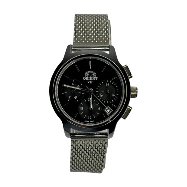 ساعت مچی زنانه اورینت سه موتوره فعال فول تایم دارای روزهای هفته به انگلیسی ، دارای تاریخ و 24 ساعت شبانه روز می باشد این ساعت موتور ژاپن جنس شیشه معدنی و جنس بدنه فول استیل هست و بند استیل قفل این ساعت کلیپسی ضامن دار هست و دارای جعبه ی چوبی شیکی می باشد