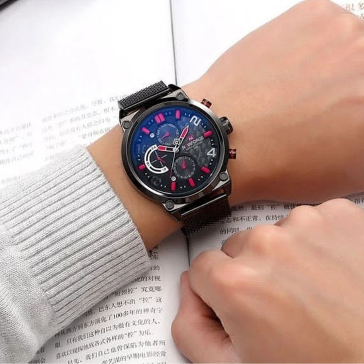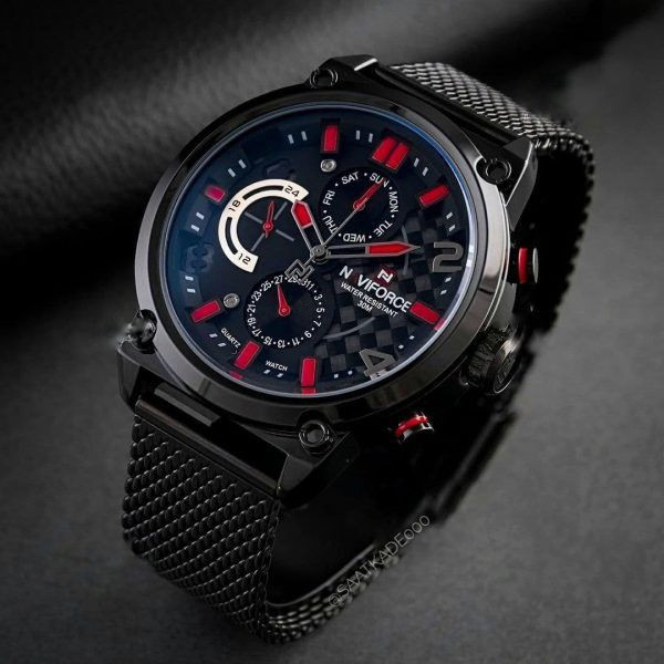 ساعت اورجینال NAVIFORCE فول تایم دارای نشانگر 24 ساعته و روزهای هفته و ماه است شیشه تقویت شده ضد خش می باشد دارای دفترچه راهنما و کارت گارانتی و هارد باکس مخصوص ساعت با حک برند NAVIFORCE
