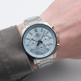 Casio Edifice EFV-650D-3AV را معرفی می کنیم که ترکیبی عالی از سبک و عملکرد طراحی شده برای مردان مدرن است. این ساعت با سایز 43.5 میلیمتر و ضخامت 11 میلیمتر، صفحهای سبز رنگ برجسته دارد که به زیبایی با نوار فولادی ضد زنگ جامد تضاد دارد و ظاهری چشمنواز و در عین حال پیچیده ایجاد میکند. این ساعت با استفاده از حرکت کوارتز ژاپنی دارای طیف وسیعی از ویژگی های چشمگیر است، از جمله کرونومتر دقیق 1 ثانیه و حالت های اندازه گیری متعدد مانند زمان سپری شده و زمان تقسیم. این ساعت مردانه دارای نمایشگر آنالوگ است که شامل سه عقربه ساعت، دقیقه و ثانیه است و همچنین دارای سه عدد چرخش اضافی برای زمان 24 ساعته و عملکرد کرونومتر است. این ساعت با مقاومت در برابر آب تا عمق 100 متر و پنجره صفحه ای شیشه ای معدنی بادوام، برای استفاده روزمره ساخته شده است. EFV-650D-3AV با وزن تنها 128 گرم، سبک و راحت است و آن را به یک همراه ایده آل برای هر موقعیتی تبدیل می کند. گیره سه تایی با یک لمس، سایش آسان را تضمین می کند، در حالی که عمر باتری تخمینی دو سال شما را بدون دردسر به موقع نگه می دارد. با گارانتی دو ساله، این کرنوگراف نه تنها یک لوازم جانبی شیک است، بلکه ابزاری قابل اعتماد برای زمان سنجی برای کسانی است که به دقت و ظرافت اهمیت می دهند. در Watch Zone موجود است
