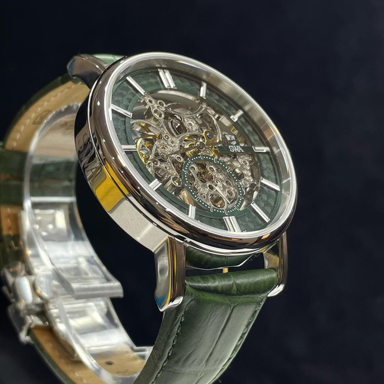 این ساعت لوکس با تکیه بر فناوری پیشرفته آلمانی در قلب خود، دقت و عملکردی بینظیر ارائه میدهد. موتور مهندسیشدهی آن با استفاده از فناوری پیشرفته، حرکتی روان، دوام بالا و کمترین میزان استهلاک را تضمین میکند. این سطح از دقت و مهندسی، ثبات عملکرد ساعت را در طولانیمدت حفظ کرده و آن را به یک انتخاب مطمئن برای علاقهمندان به ساعتهای مکانیکی تبدیل کردهاست. قاب از استیل ۳۱۶ ساخته شده که در برابر خوردگی مقاوم است، و شیشهی سافایر ضدخش، وضوح و استحکام بالایی را فراهم میکند. طراحی اسکلتون، پیچیدگی مهندسی موتور را به نمایش میگذارد و زیبایی مکانیزم داخلی را برجسته میکند. بند این مدل از چرم طبیعی ساخته شده که علاوه بر دوام، راحتی فوقالعادهای دارد. ترکیب دقت مهندسی آلمانی و طراحی کلاسیک اروپایی، این ساعت را به گزینهای ایدهآل برای افراد با سلیقه خاص تبدیل کرده است.