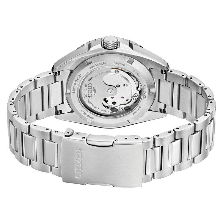 این مدل از ساعت مچی های مردانه برند سیتیزن دارای بند و بدنه ی استیل به رنگ نقره ای و صفحه ی تیفانی بوده و آن را صاحب ابهت و جذابیت بی نظیری کرده این ساعت برند سیتیزن اتوماتیک بوده و قابلیت شارژ با حرکت دست را دارد. از ویژگی های منحصر بفرد این طرح از ساعت سیتیزن میتوان به قابلیت نمایشگر روزهای ماه و هفته اشاره کرد.