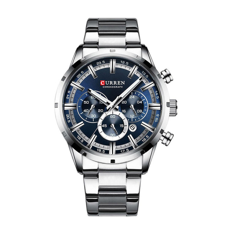 ساعت مچی کارن مردانه مدل 8355 سه موتور فعال کرنوگراف استیل رنگ ثابت شیشه ضد خش آنتی رفلکس ضد حساسیت ضد آب در حد شستشوی دست بند استیل درجه یک قفل اصلی دکمه دار