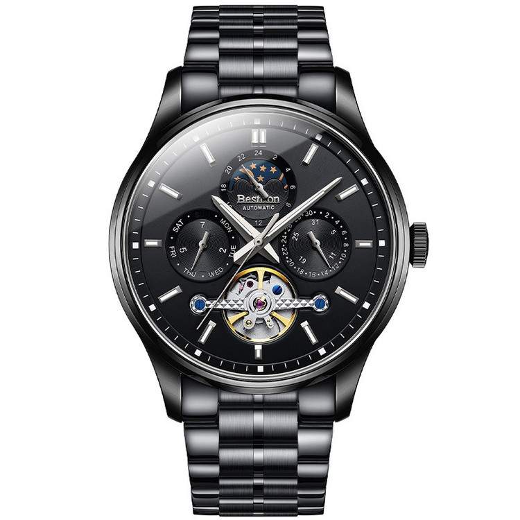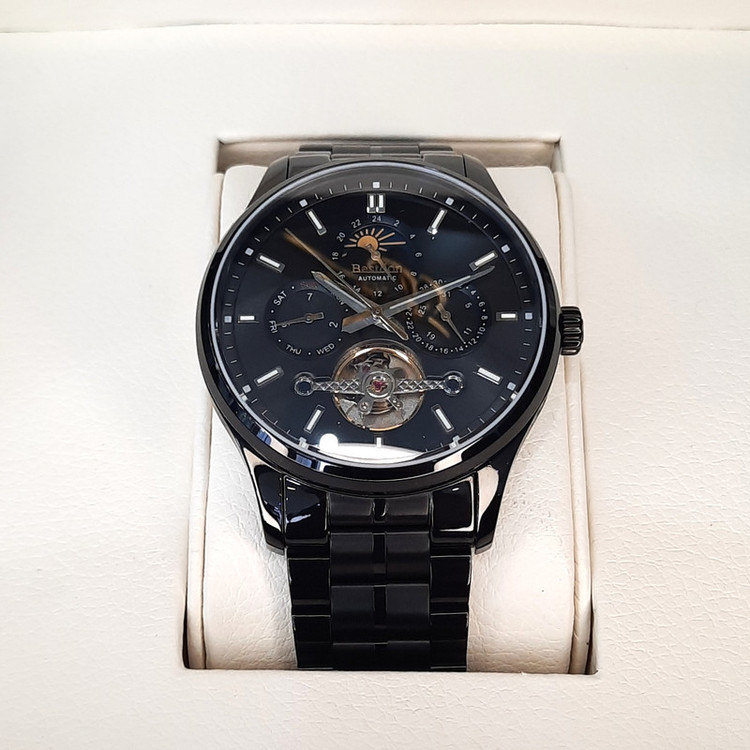 این طرح از برند بستدون از زیبا ترین و پر فروشترین مدل های مارک بستدون است و طراحی بسیار ساده و مجلسی و در عین حال اسپرت و جوان پسندی دارد. طراحی بند و بدنه ی این ساعت به شکلی خاص و ساده است که جلوه ای زیبا به ساعت داده و همچنین صفحه ساعت نیز ساده طراحی شده است و در عین حال این ساعت سه موتوره بوده و اسکلتون و یا قلب باز میباشد. در این ساعت از بستدون از رنگ مشکی استفاده شده که زیبایی این ساعت را دو چندان مینماید.