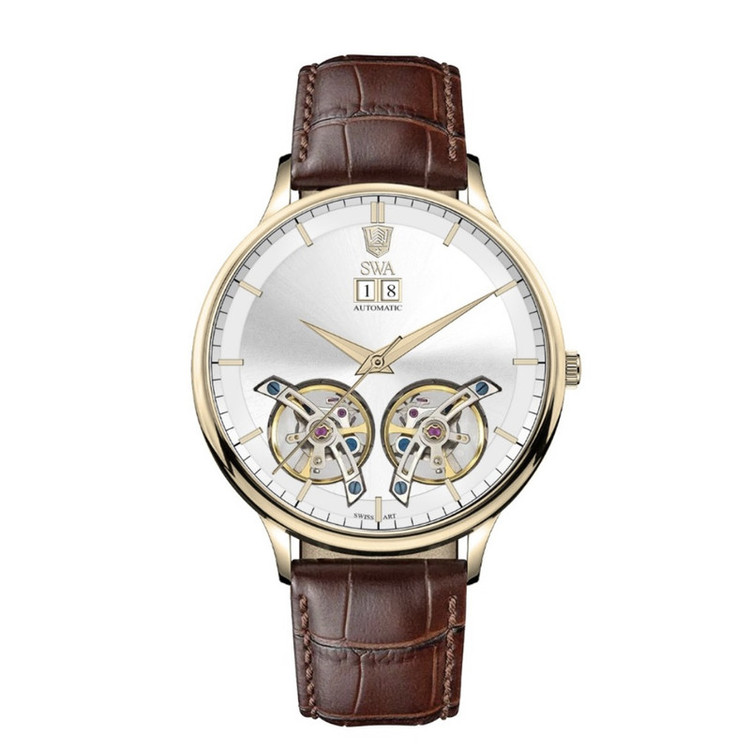مکانیزم پیچیدهی توربیلون دوقلو، دقت بینظیر این ساعت را تضمین کرده و جذابیت بصری آن را دوچندان میکند. نمایشگر بزرگ تاریخ، خوانایی بالایی را فراهم آورده و کاربردی بودن طراحی را نشان میدهد. صفحهی ساعت با شیشهی سافایر پوشانده شده که از خط و خش جلوگیری کرده و وضوح بینظیری را فراهم میکند. بند چرمی ایتالیایی با دوختی ظریف، علاوه بر زیبایی، راحتی فوقالعادهای روی مچ ایجاد میکند. ترکیب عقربههای ظریف و شاخصهای برجسته روی صفحهای با پسزمینهی مینیمال، جلوهای شیک و مدرن به ساعت بخشیده است. این مدل اتوماتیک بوده و با حرکت دست انرژی خود را تأمین میکند، که نشانهای از مهندسی پیشرفته و کیفیت برتر آن است.