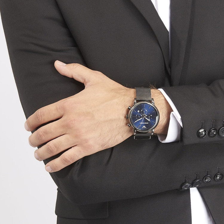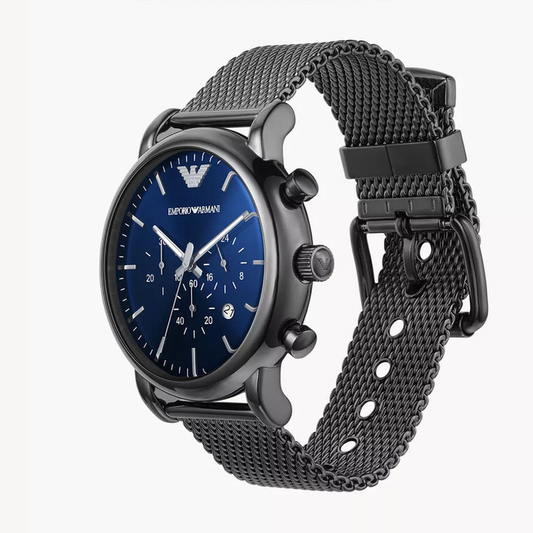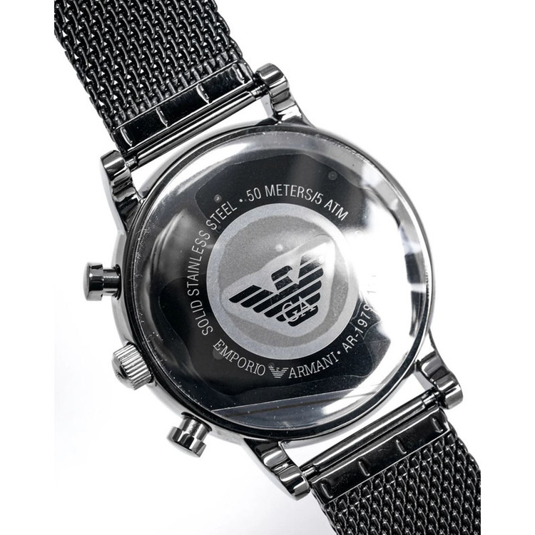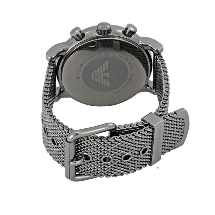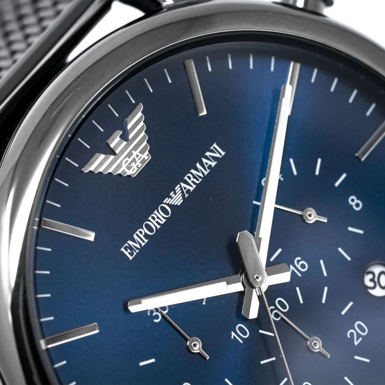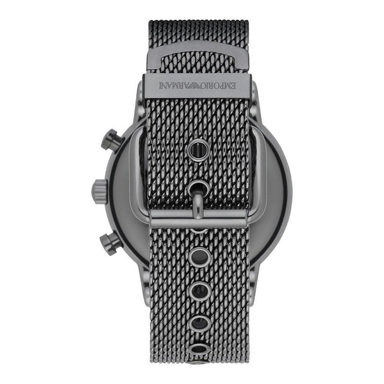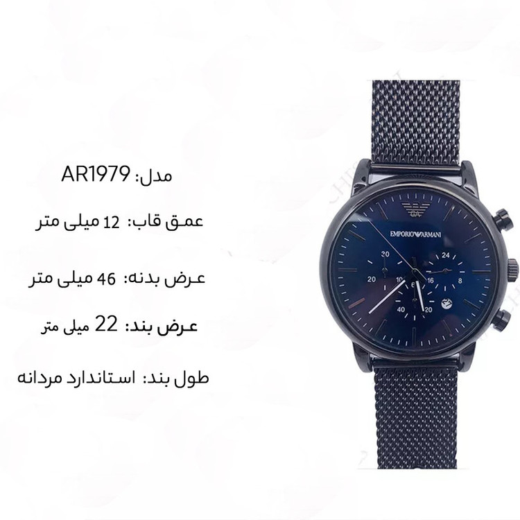 برند امپریو آرمانی برندی امریکایی ست که توسط کمپانی فسیل گروپ (سومین کمپانی ساعت سازی مطرح دنیا) ساخته می شود. موتور این ساعت توسط کمپانی میوتای ژاپن (بزرگترین کمپانی موتورساعت سازی دنیا) ساخته شده و از نوع کوارتز (باتری دار) است. این ساعت در ابعاد قطر قاب 46 میلیمتر ضخامت قاب 12 میلیمتر عرض بند 22 میلیمتر طراحی شده است. جنس بند و جنس بدنه این ساعت از استیل ضد حساسیت با کیفیت (318 میکرون) می باشد.از ویژگی های تخصصی این ساعت میتوان به تقویم ، کرنوگراف و نمایش 24 ساعته اشاره کرد. مقاومت این ساعت در برابر آب 5 اتمسفر می باشد.