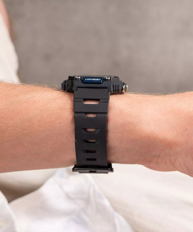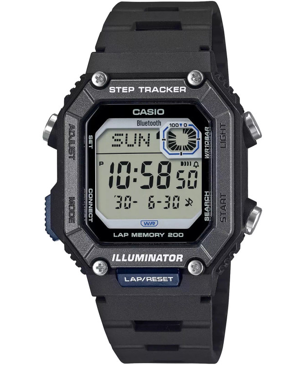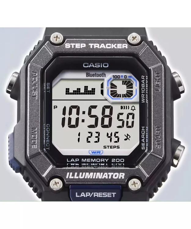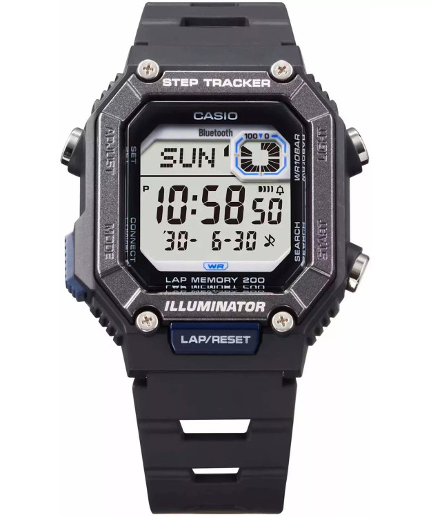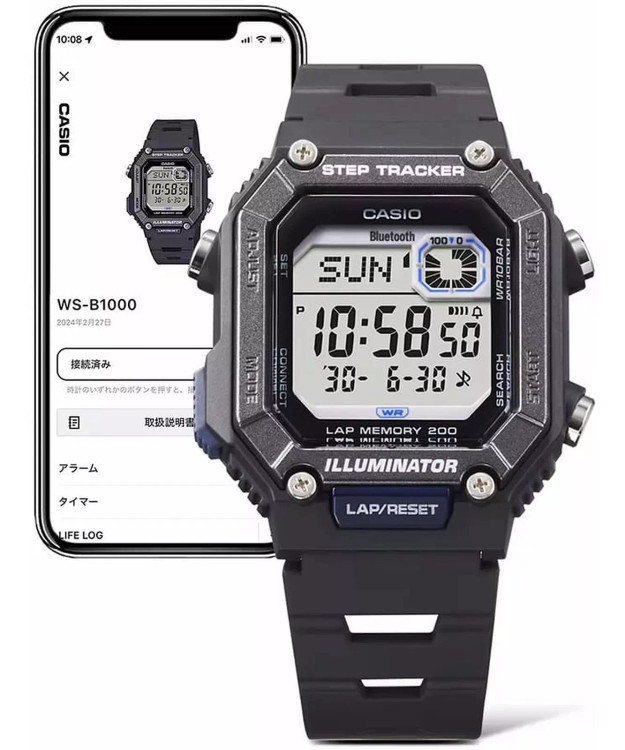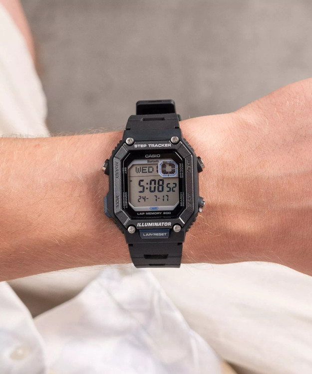 ساعت مچی اسپرت کاسیو مدل CASIO WS-B1000-1AVDF طراحی ساده و کارایی بالا برای راحتتر کردن زندگی روزمره. ساعت دیجیتال جمع و جور با قابلیت جفت شدن بلوتوث®، همراهی ایدهآل برای کارهای روزمره، ورزش یا پیگیری سلامت است. ساعت WS-B1000 دارای کرنومتر ۱/۱۰۰ ثانیه با حافظه ۲۰۰ دور و گامشمار برای مدیریت تناسب اندام روزانه است. شتابسنج داخلی حرکات بدن را شناسایی کرده و به طور خودکار گامها را میشمارد. علاوه بر نمایش تعداد گامها، گرافی از پیشرفت هدف شما را نیز نشان میدهد. جفت شدن با گوشی از طریق بلوتوث® امکان اصلاح خودکار زمان و تنظیم آسان هشدار، زمان جهانی و سایر توابع از طریق اپلیکیشن را فراهم میکند. شمارش گامها و زمانهای کرنومتر نیز قابل انتقال به گوشی و مشاهده است. طراحی باریک و جمع و جور با دکمه جلویی، مدیریت دادهها را در حین فعالیتها آسان میکند و بند اورتان سوراخدار تنفسپذیری و راحتی را فراهم میآورد. مقاومت در برابر آب تا ۱۰۰ متر شما را از نگرانی در روزهای بارانی بینیاز میکند