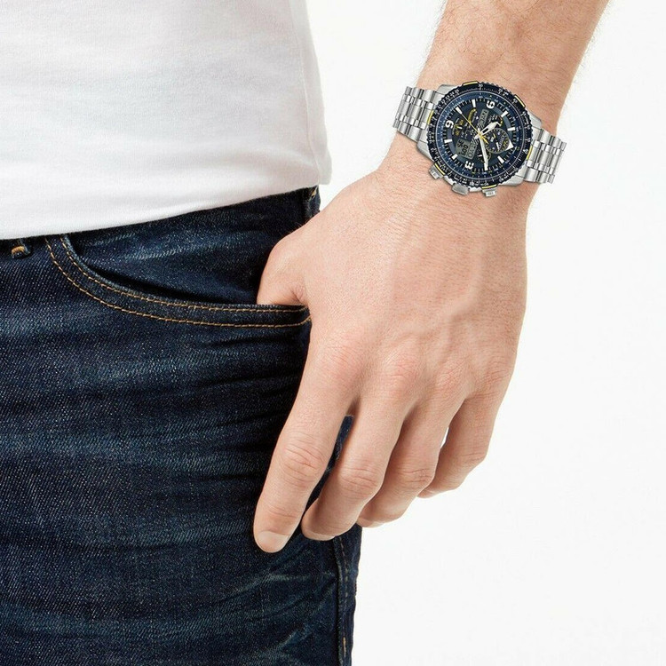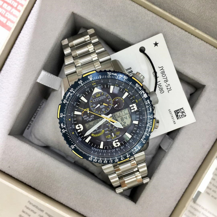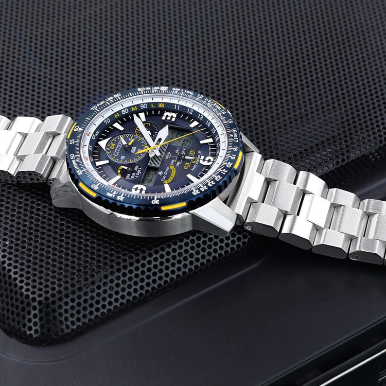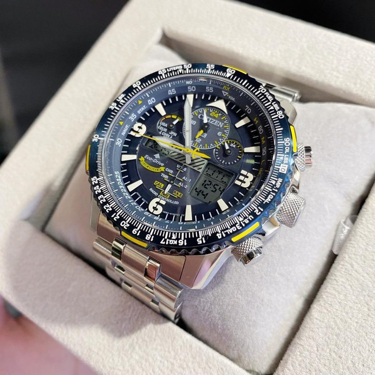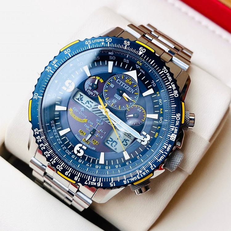 این مدل از ساعت مچی های مردانه برند سیتیزن دارای بدنه و بند استیل با ترکیب رنگ نقره ای و سرمه ای و مشکی خاص خود صاحب ابهت و جذابیت بی نظیری شده است.این ساعت برند سیتیزن اکودرایو بوده و قابلیت شارژ با نور محیط را دارد. همچنین این ساعت سیتیزن دارای امکانات پرومستر و خلبانی و تنظیم رادیویی و تقویم بی نهایت و وقت جهانی و زمان سنج 24 ساعت و هشدار میباشد. از ویژگی های منحصر بفرد این طرح از ساعت سیتیزن میتوان به قابلیت ذخیره شارژ باطری تا 42ماه و نمایگشر وضعیت 24ساعته اشاره کرد.