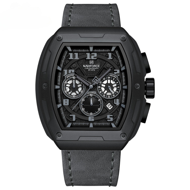ساعت مچی کرنوگراف سه موتوره فول تایم مردانه NAVIFORCE NF8053 با قاب صنعتی الهام گرفته از زره طراحی شده و دارای طراحی مهرهای متمایز است. صفحه 3 بعدی آن نمایی جذاب از کارهای پیچیده را ارائه می دهد که با شماره گیری های فرعی چند کاره به مدت 24 ساعت، دقیقه و ثانیه بهبود یافته است. عملکرد دوگانه این ساعت یک همراه عالی برای مسافران مکرر است. بدنه بشکه ای شکل با طراحی ارگونومیک از جنس استیل برای راحتی ساخته شده است و به خوبی روی مچ دست قرار می گیرد. نشانگرهای درخشان، دید واضح را در شرایط کم نور تضمین می کنند، در حالی که بند چرم طبیعی انعطاف پذیر، لوکس و قابلیت تنظیم را فراهم می کند. تعهد Naviforce به کیفیت در انتخاب مواد درجه یک می درخشد و دوام و تجربه پوشیدن برتر را تضمین می کند. این ساعت با درجه مقاومت 3ATM در برابر آب،مقاوم در برابر پاشش آب و استفاده های روزمره در شرایط شرجی و بارانی است.برند و لوگوی نیوی فورس بر روی صفحه،قفل،سرکوک،پشت بند و روی درب ساعت به زیبایی حک شده است. این ساعت بدون دردسر مناسب استایلهای مختلف شخصی است.دارای دفترچه،کارت و جعبه اورجینال هاردباکس برند نیوی فورس است