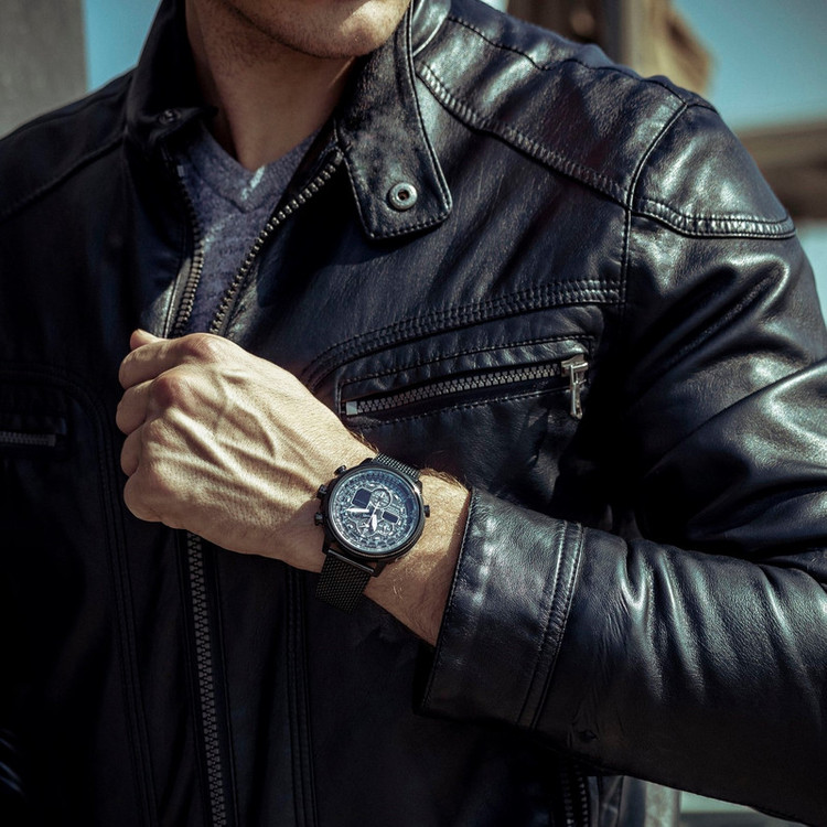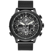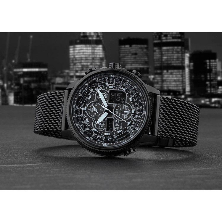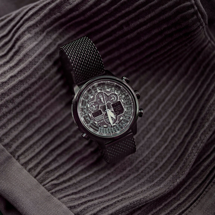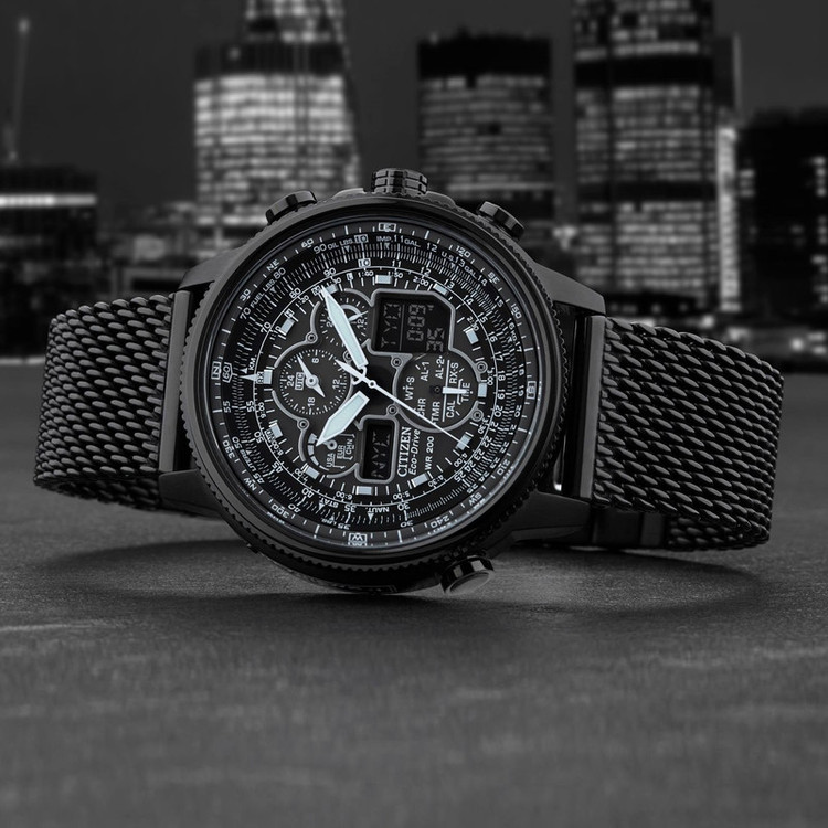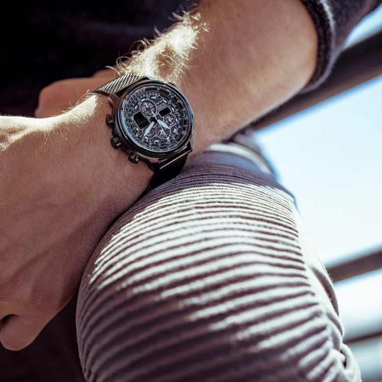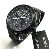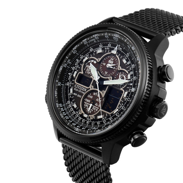 این مدل از ساعت مچی های مردانه برند سیتیزن دارای بدنه و بند استیل مشکی بوده و با صفحه مشکی رنگ خاص خود صاحب ابهت و جذابیت بی نظیری شده است. بند حصیری این ساعت زیبایی آن را دوچندان کرده است. این ساعت برند سیتیزن اکودرایو بوده و قابلیت شارژ با نور محیط را دارد. همچنین این ساعت سیتیزن دارای امکانات تنظیم رادیویی و تقویم بی نهایت و وقت جهانی و زمان سنج 24 ساعت و هشدار و پرومسترو خلبانی میباشد. از ویژگی های منحصر بفرد این طرح از ساعت سیتیزن میتوان به قابلیت ذخیره شارژ باطری تا 42ماه و نمایشگر وضعیت 24ساعته اشاره کرد.
