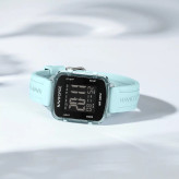 قاب مربعی شیک پلی کربنات : شکل مربعی و جنس نیمه شفاف آن به این ساعت زیبایی منحصر به فرد و مدرنی میبخشد. این ساعت سبک اما بادوام است و برای استفاده روزانه عالی است.
