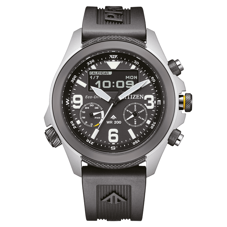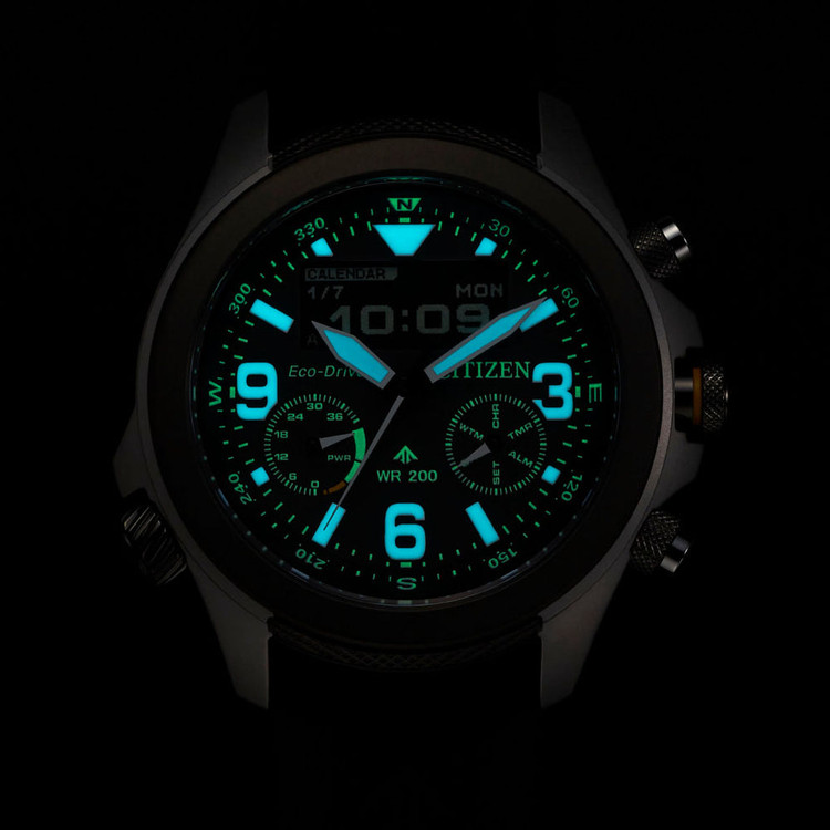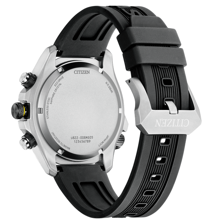 این ساعت سیتیزن دارای قابی از جنس استیل با قطر ۴۳ میلیمتر و بندی از جنس رابر است. درون قاب، موتور سیتیزن قرار دارد و ساعت دارای یک کریستال یاقوت کبود ضد انعکاس است. این ساعت دارای مقاومت ۲۰ اتمسفری است. این بدان معناست که این ساعت برای غواصی مناسب است. این ساعت دارای 5 سال گارانتی است