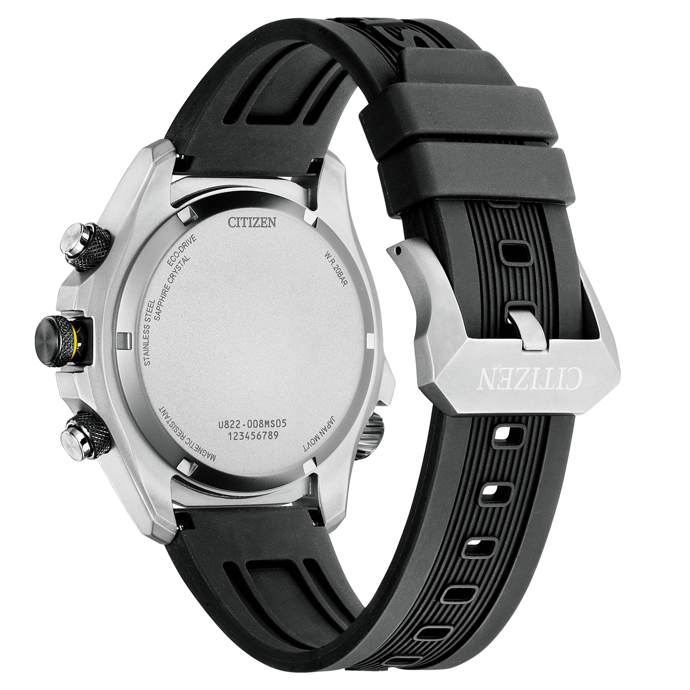 این ساعت سیتیزن دارای قابی از جنس استیل با قطر ۴۳ میلیمتر و بندی از جنس رابر است. درون قاب، موتور سیتیزن قرار دارد و ساعت دارای یک کریستال یاقوت کبود ضد انعکاس است. این ساعت دارای مقاومت ۲۰ اتمسفری است. این بدان معناست که این ساعت برای غواصی مناسب است. این ساعت دارای 5 سال گارانتی است